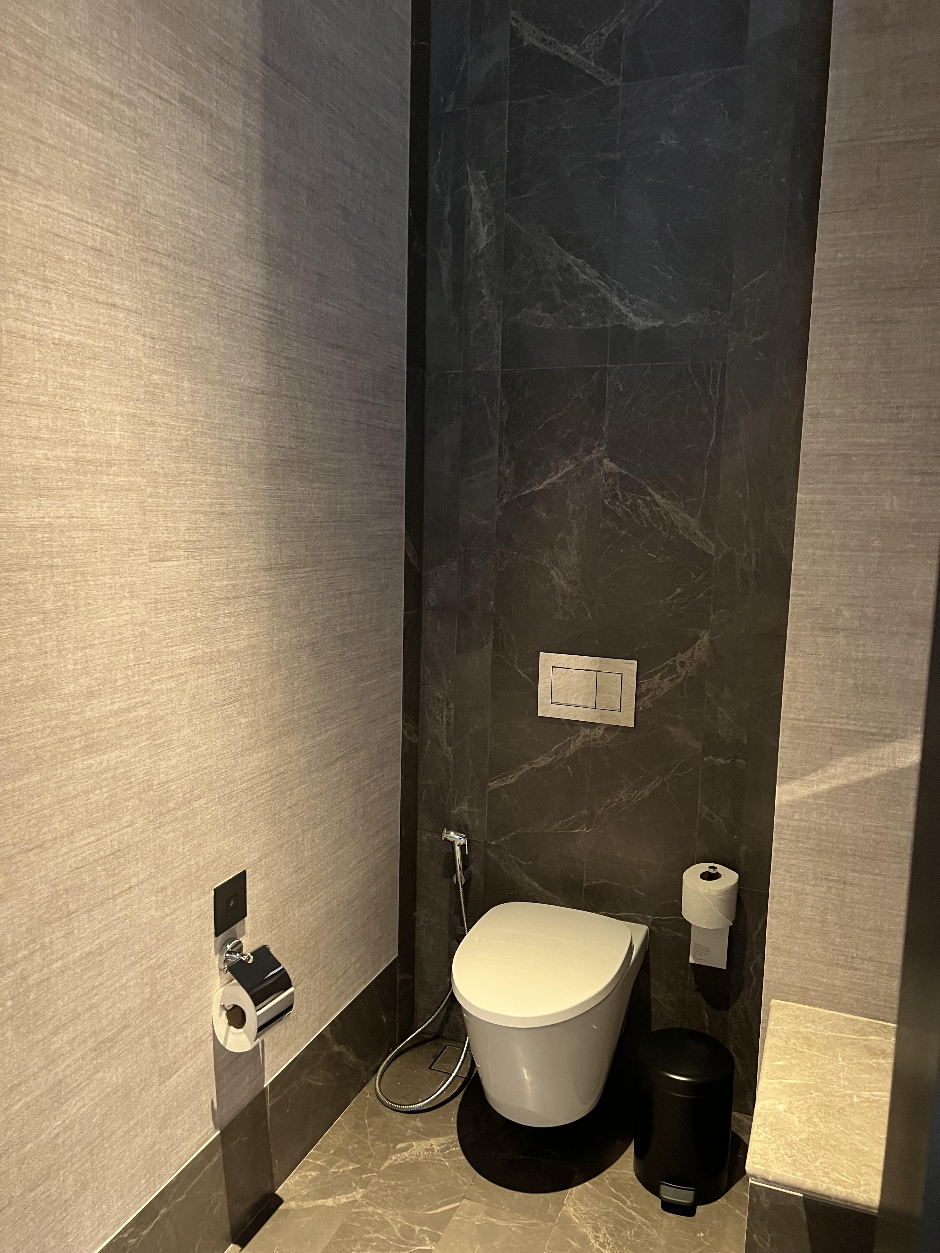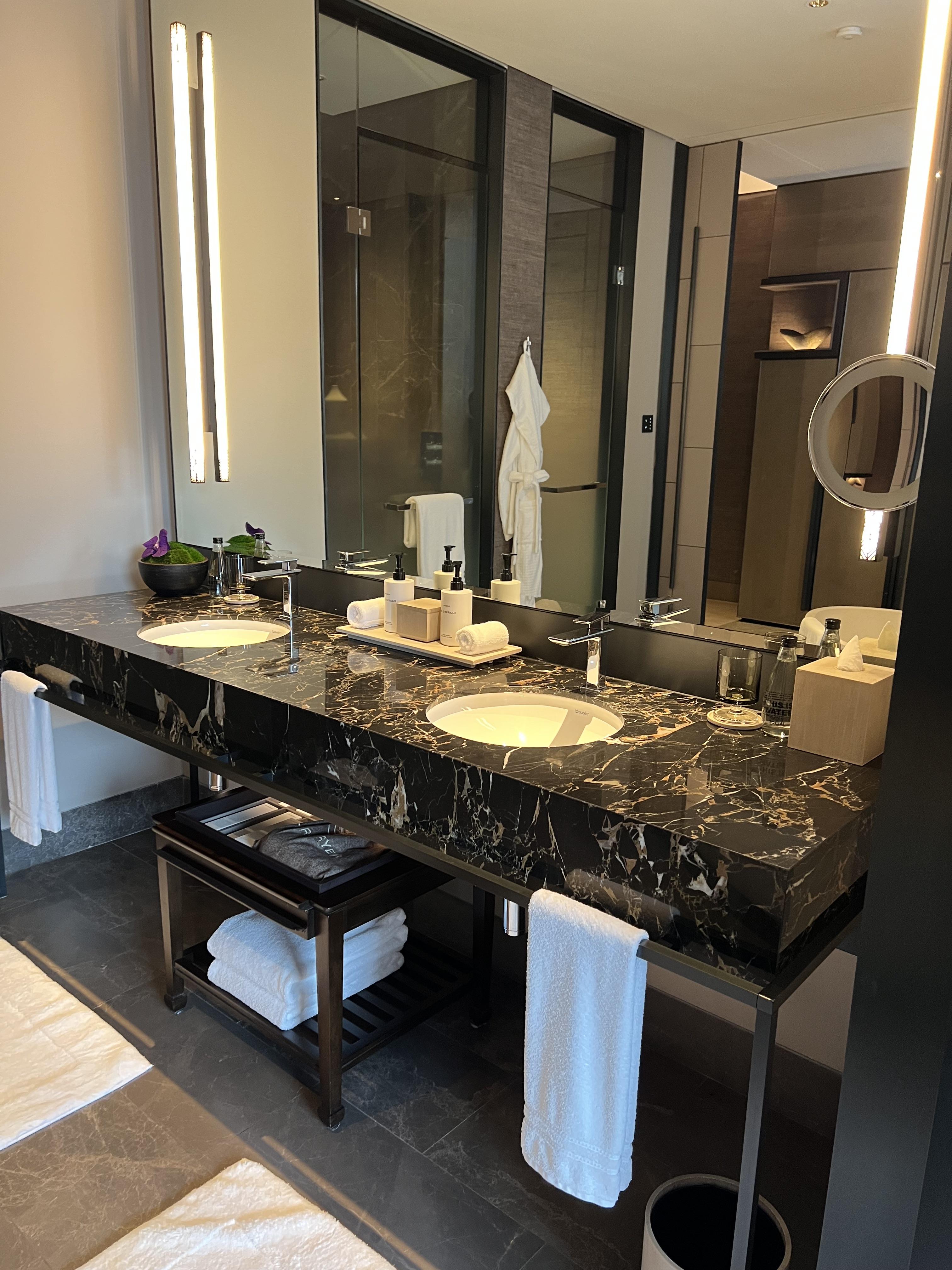 화장실도 충분히 넓고 세면용품이 바이레도 제품이 비치되어 있는데 고급의 끝판왕을 느낄 수 있었습니다. 다만 변기가 있는 곳이 유리창으로 되어 있어 프라이버시가 보장이 안된다는 점이 조금 아쉬웠고 그 외에는 정말 흠잡을 데 없는 룸 컨디션이었습니다.