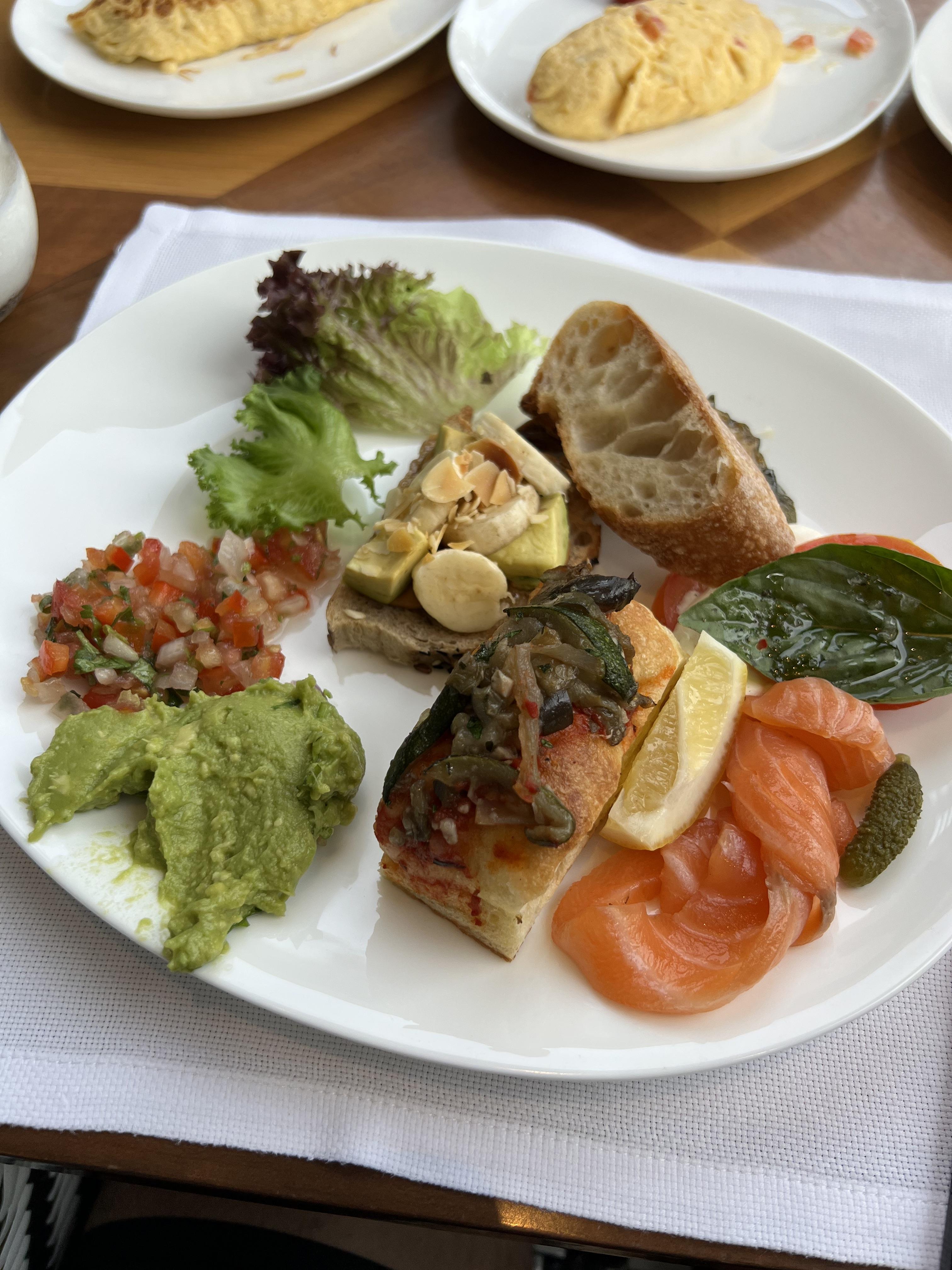 포시즌스 호텔의 가장 큰 특징은 빵입니다. 빵에 진심인 파티쉐가 있는지 피자빵을 바로 구워내는 화덕이 보이고 여러 가지 빵을 맛볼 수 있습니다. 빵 외에도 과카몰리, 망고 등 다른 호텔에서 볼 수 없는 고급 음식을 맛볼 수 있습니다.