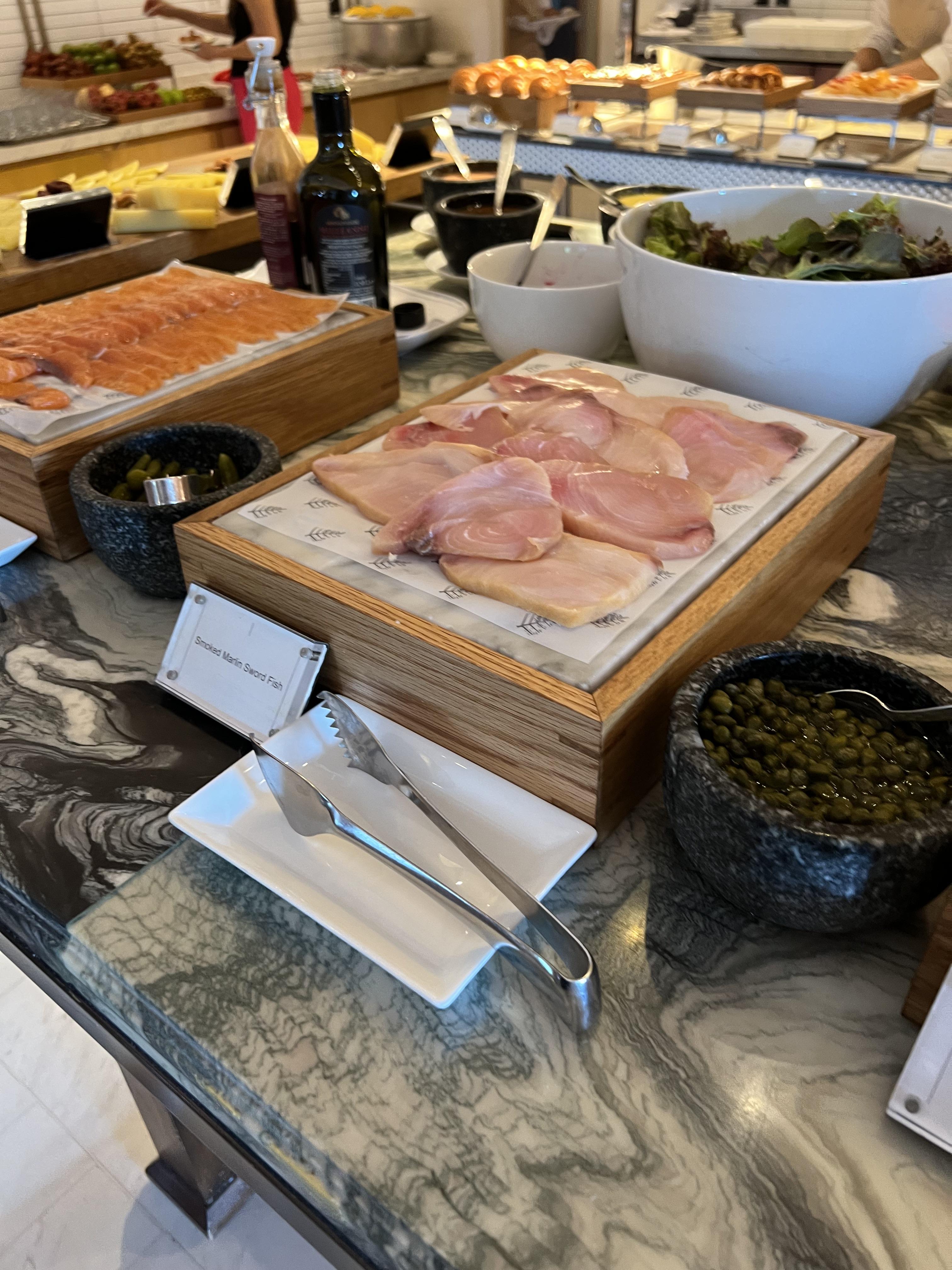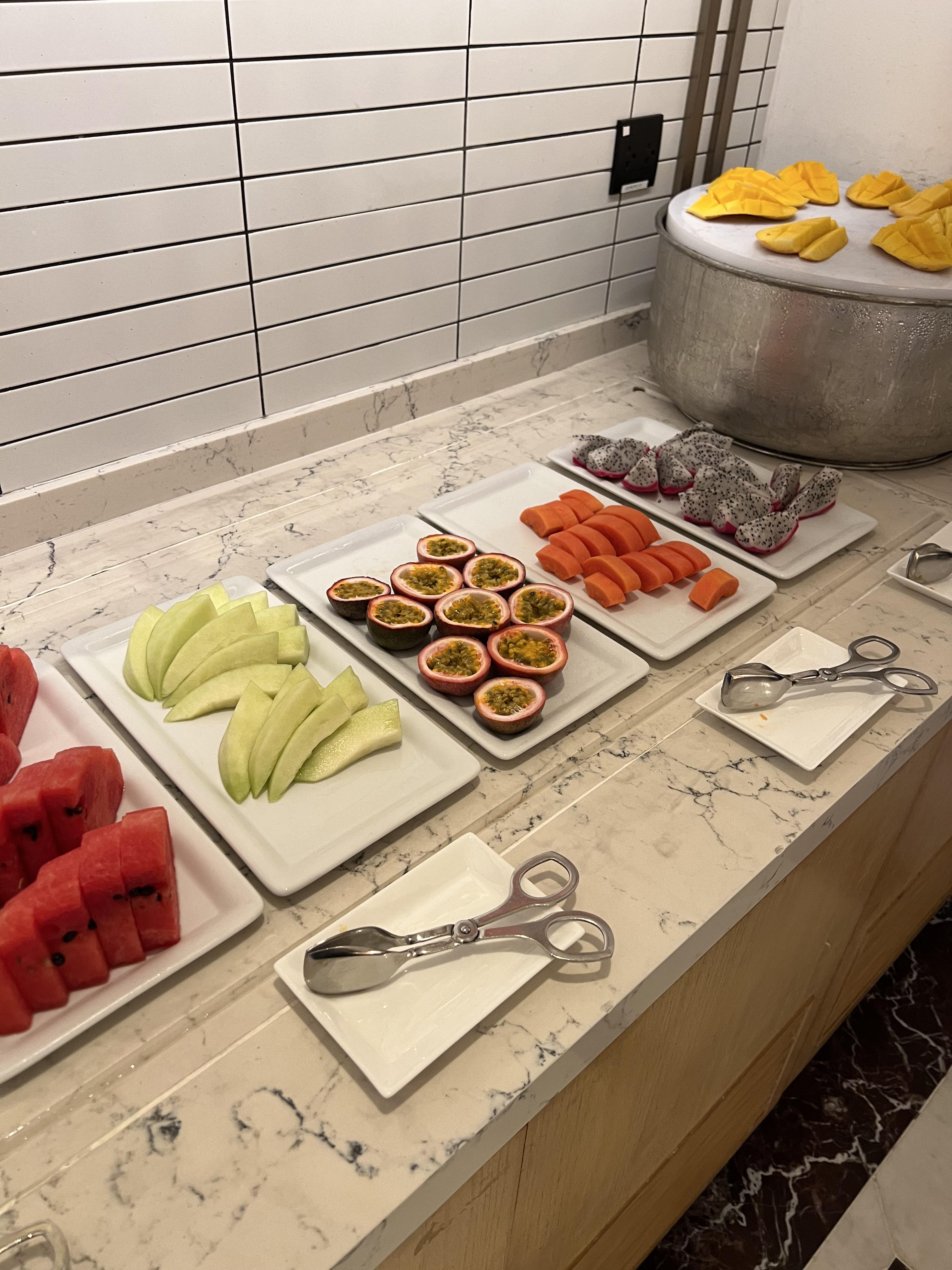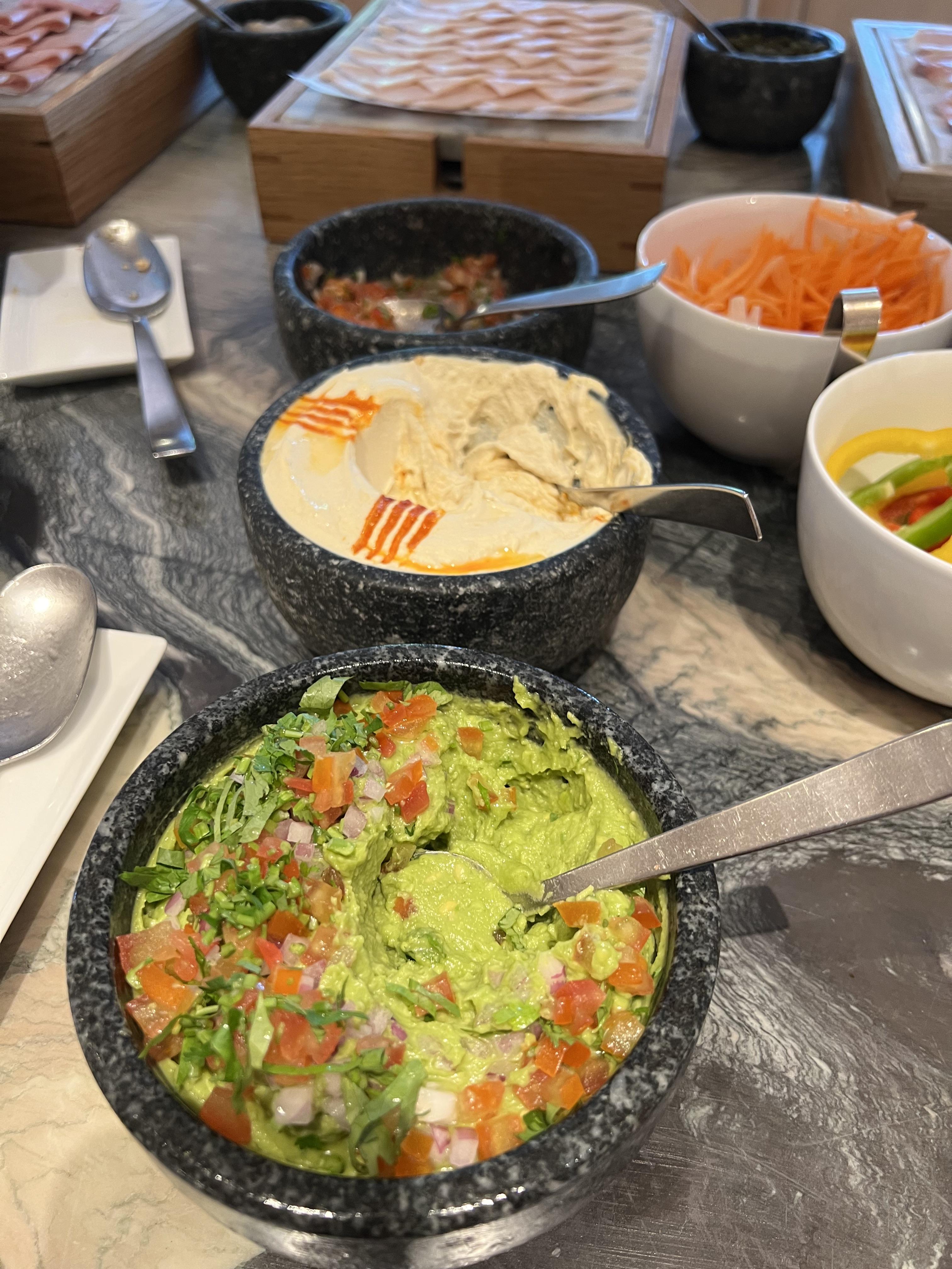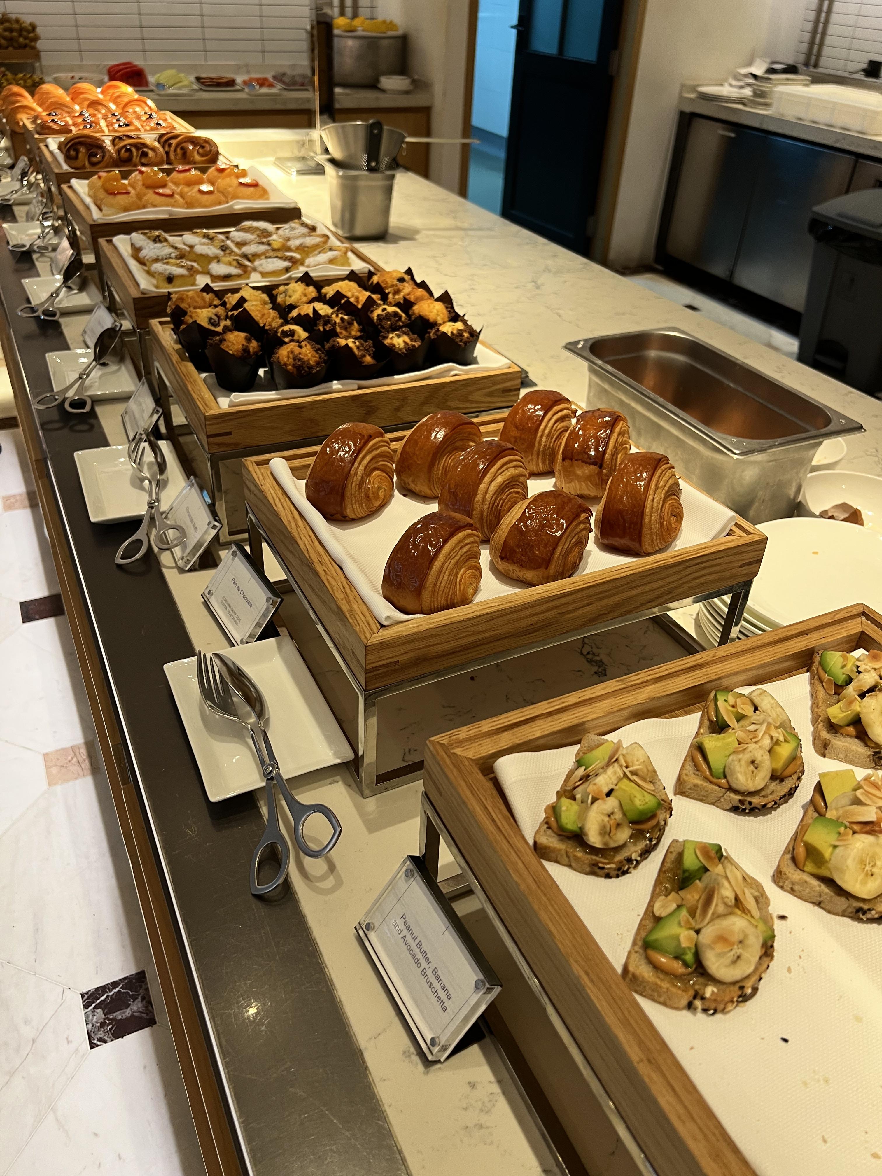 포시즌스 호텔의 가장 큰 특징은 빵입니다. 빵에 진심인 파티쉐가 있는지 피자빵을 바로 구워내는 화덕이 보이고 여러 가지 빵을 맛볼 수 있습니다. 빵 외에도 과카몰리, 망고 등 다른 호텔에서 볼 수 없는 고급 음식을 맛볼 수 있습니다.