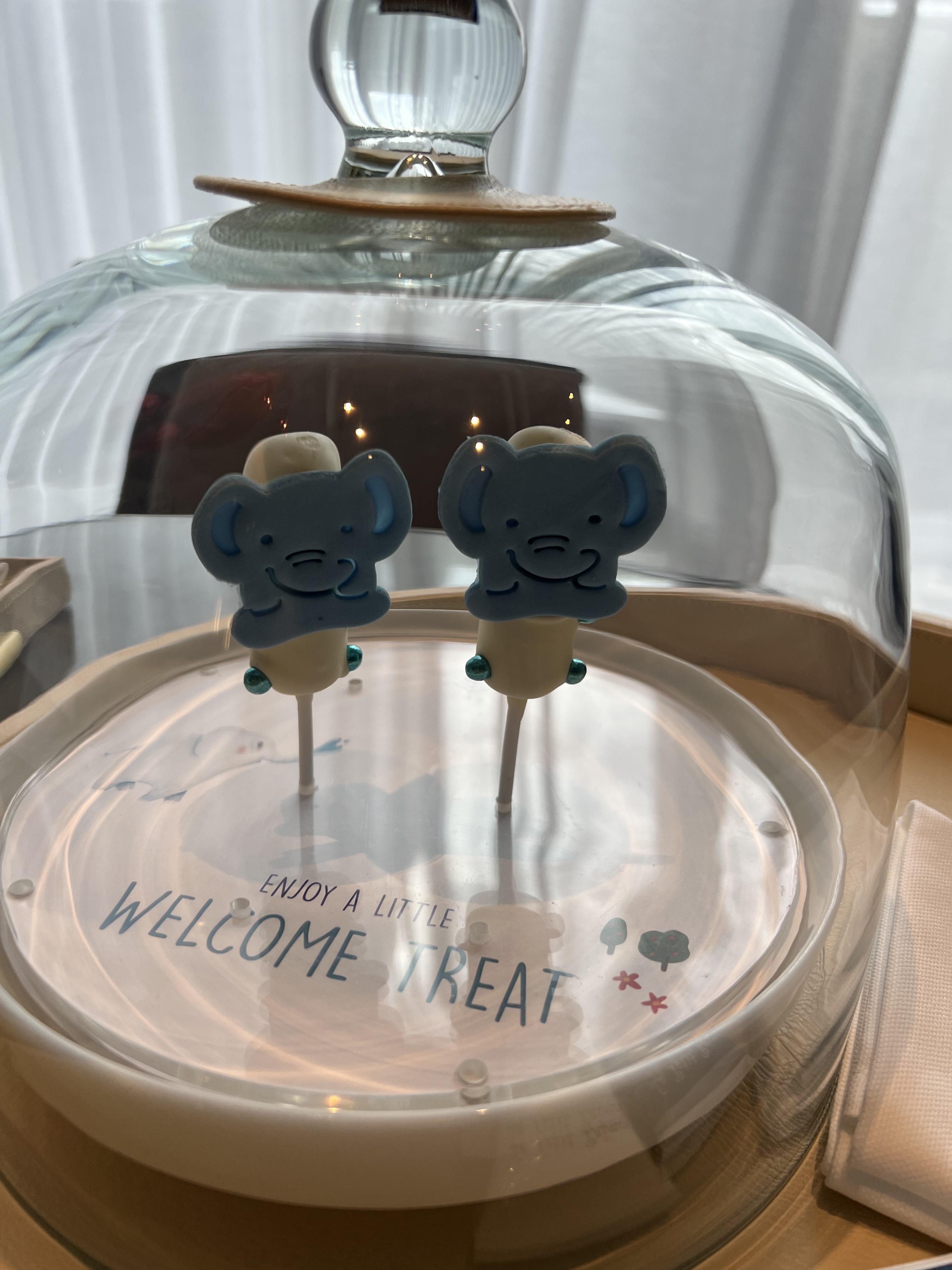 추가로 별도로 키즈 어메니티를 요청하면 간단한 간식과 함께 귀여운 어메니티를 받을 수 있었습니다. 웰컴 쿠키도 정성스러운 접시에 담아서 전달해 주고 샴푸와 바디워시는 너무 귀여워서 쓰기도 아깝네요.
