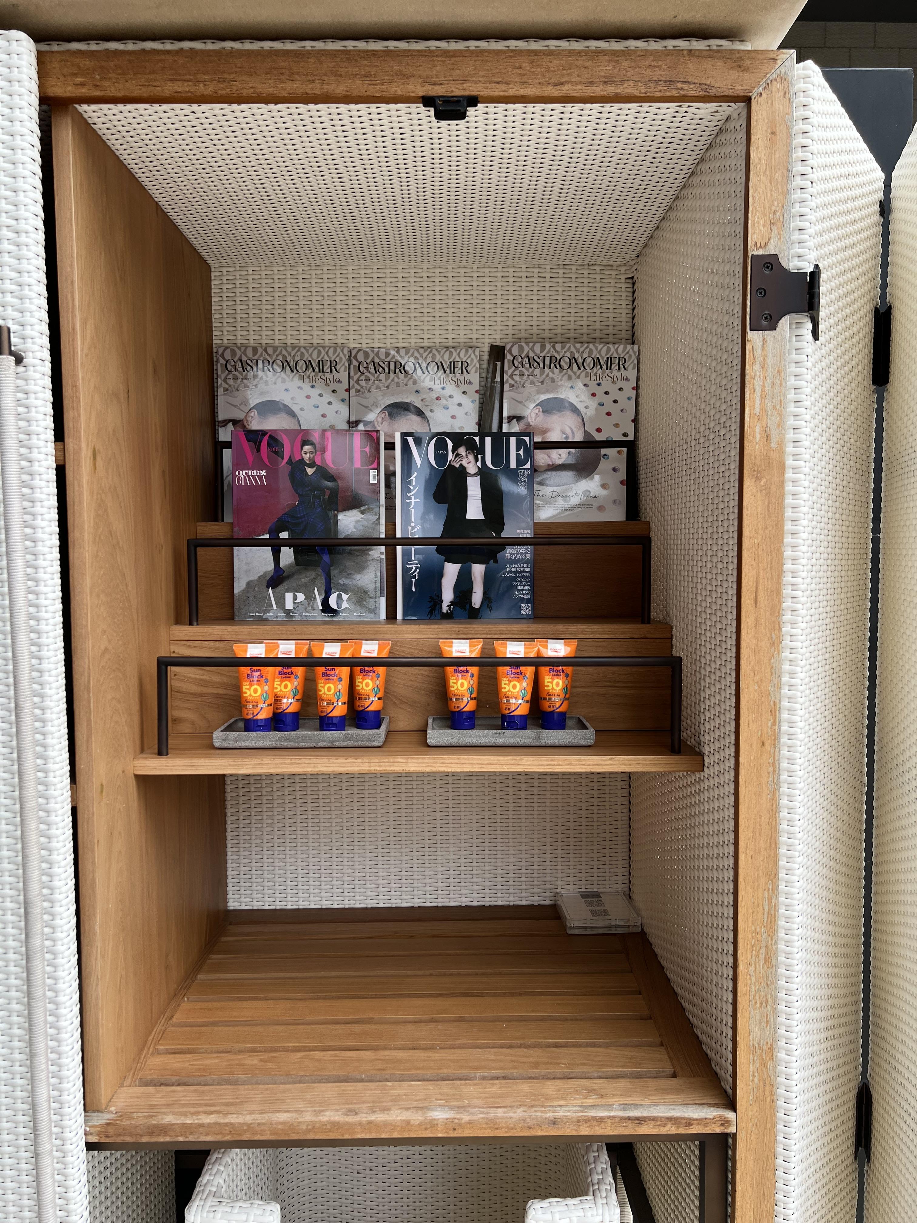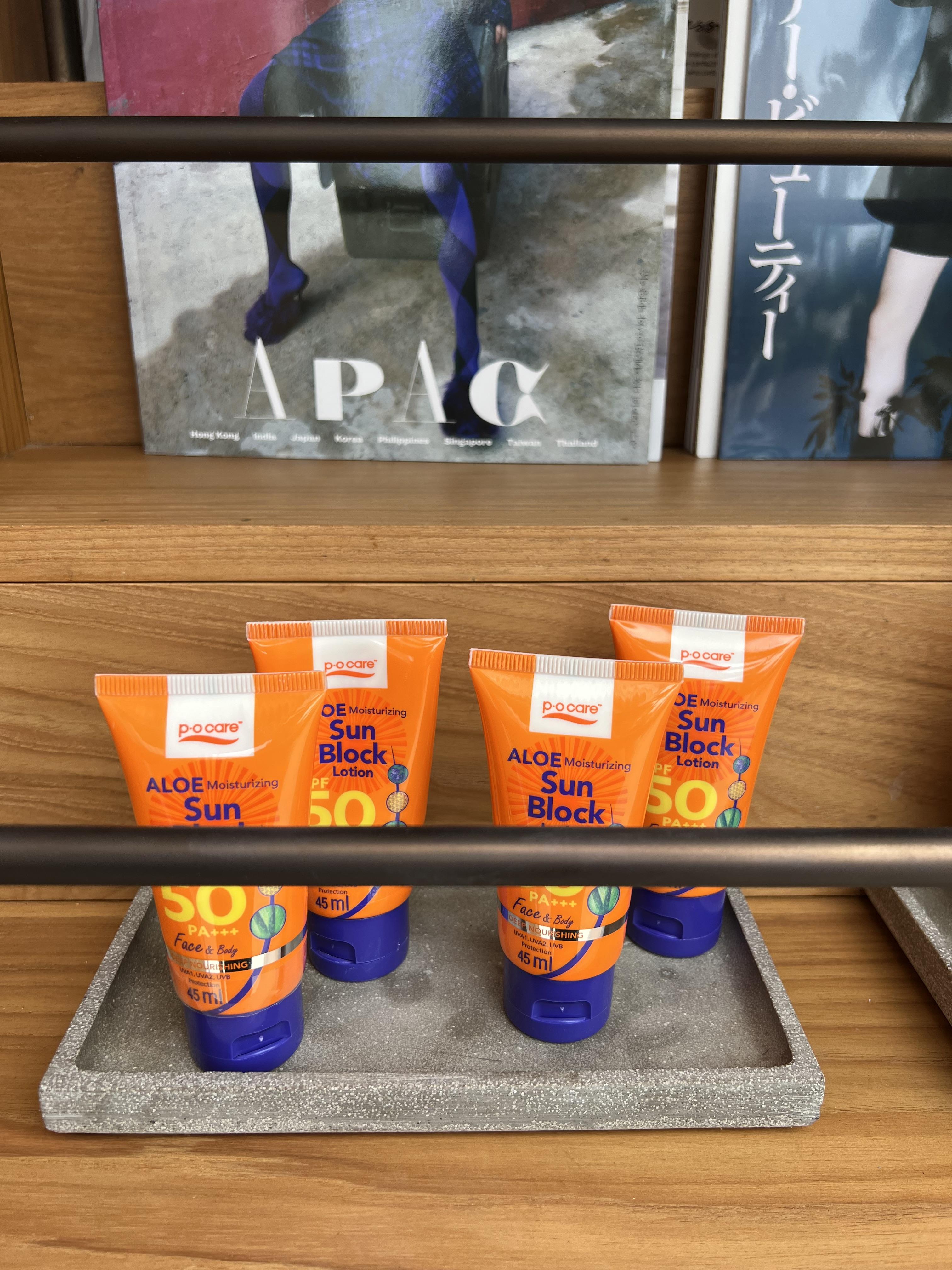 탈의실이 수영장과 연결되어 있어 호텔 방 안에서 미리 옷을 갈아입을 필요가 없다는 점이 편했고 무엇보다 선크림이 구비되어 있어 물놀이 와중에도 필요하면 언제든지 선크림을 바를 수 있습니다.