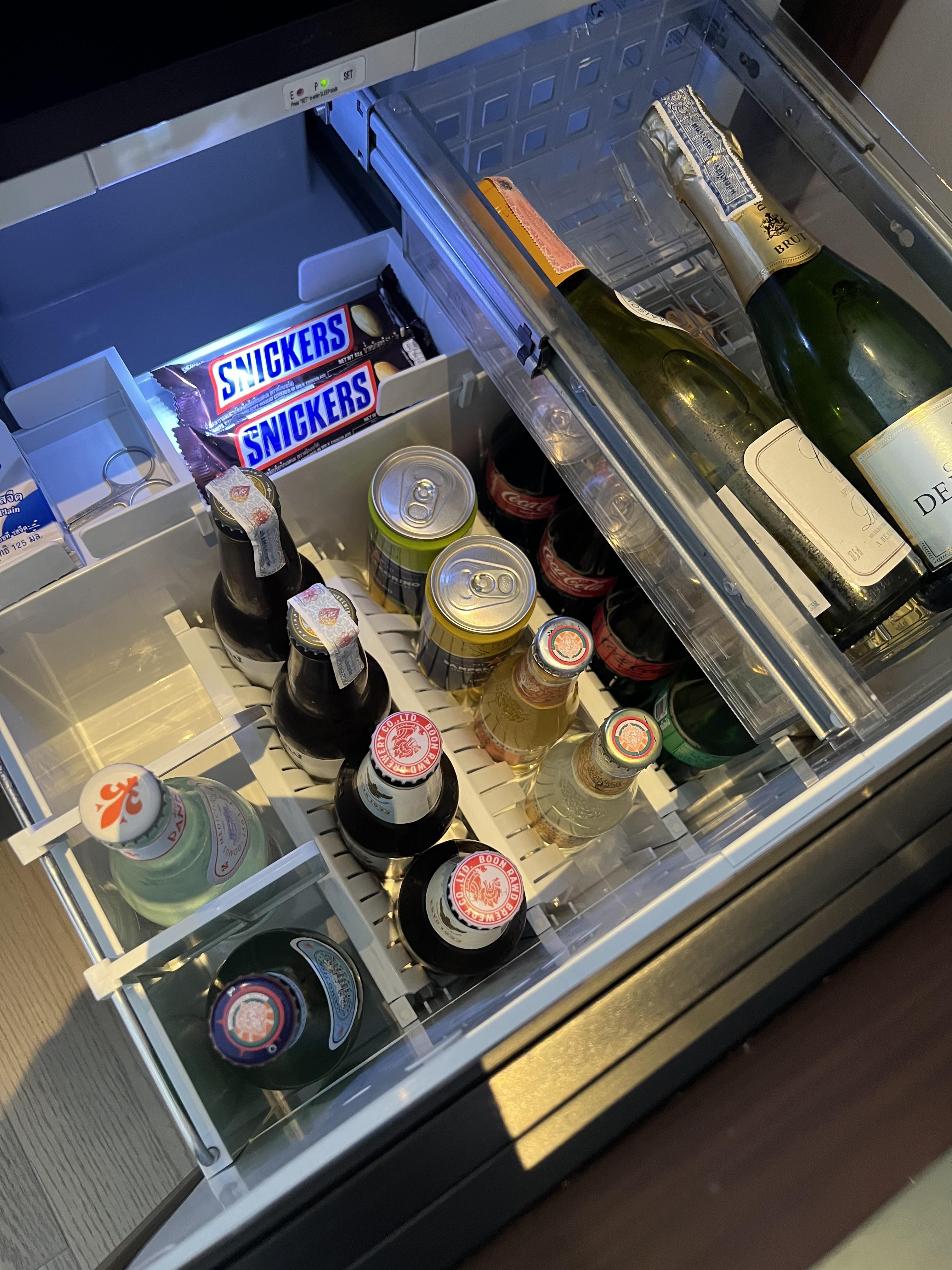 미니바에 구비된 스낵과 음료의 종류도 다양하고 별도로 주문하지 않아도 미리 세팅되어 있는 아이스버킷은 정말 세심한 서비스를 다시 한 번 느낄 수 있게 합니다.