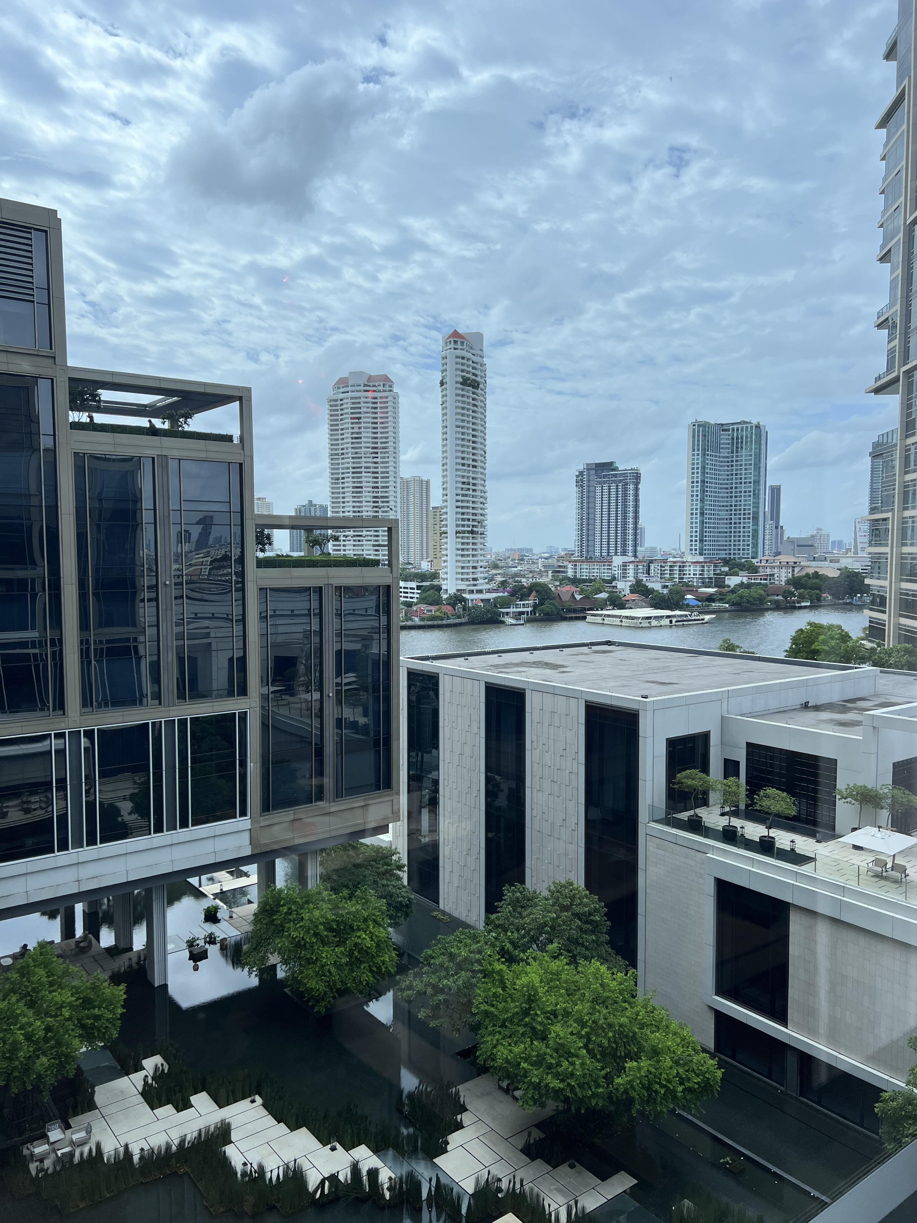 앞에 있는 건물에 가려 짜오프라야강의 일부분만 볼 수 있었지만 충분히 뷰가 좋았습니다. 특히 밤이 되면 수 많은 유람선이 지나가는 풍경이 분위기를 더욱 좋게 만들었습니다. 룸 내부도 넓고, 깔끔하게 좋았습니다.
