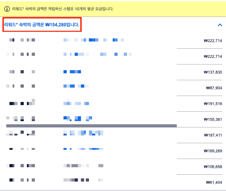 리워드 쿠폰의 금액은 지난 10번의 숙박비용의 평균금액입니다. 비싼 호텔 위주로 이용을 했으면 쿠폰 금액이 올라가고 반면에 저렴한 숙박시설을 이용했다면 쿠폰의 혜택도 줄어듭니다.