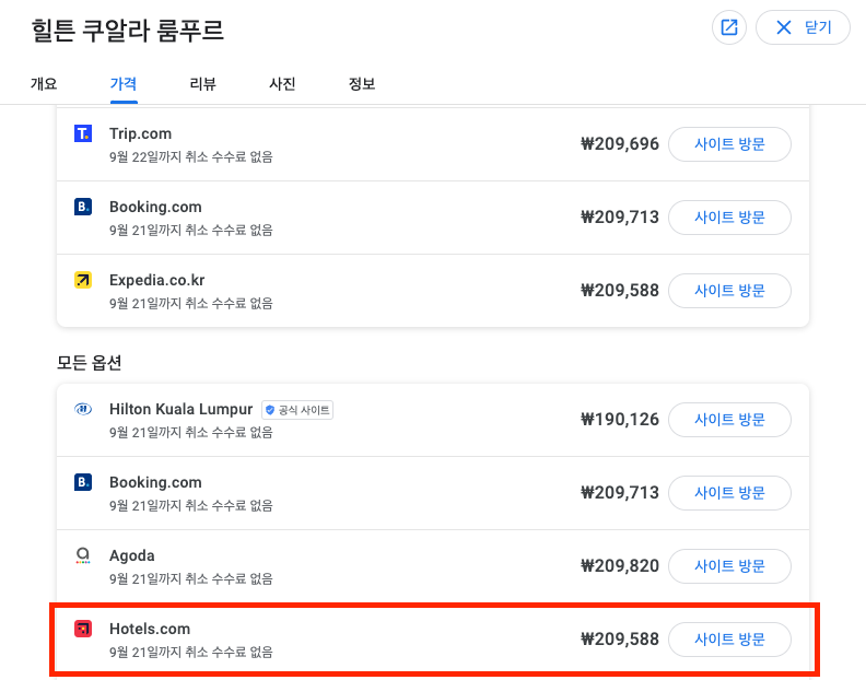 호텔 가격을 비교해보면 호텔스닷컴이 가장 저렴한 경우는 거의 없습니다. 그렇다고 호텔스닷컴 이 비쌀까요? 정답은 x 입니다.