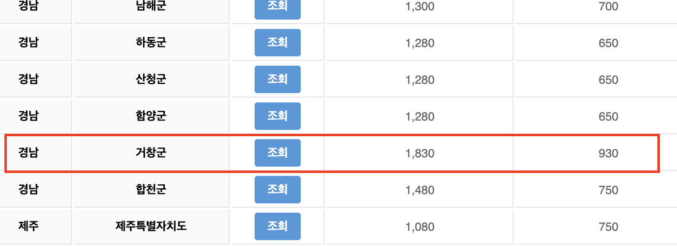 - 거창군 : 5,005만원 - 1,860만원 = 3,145만원
