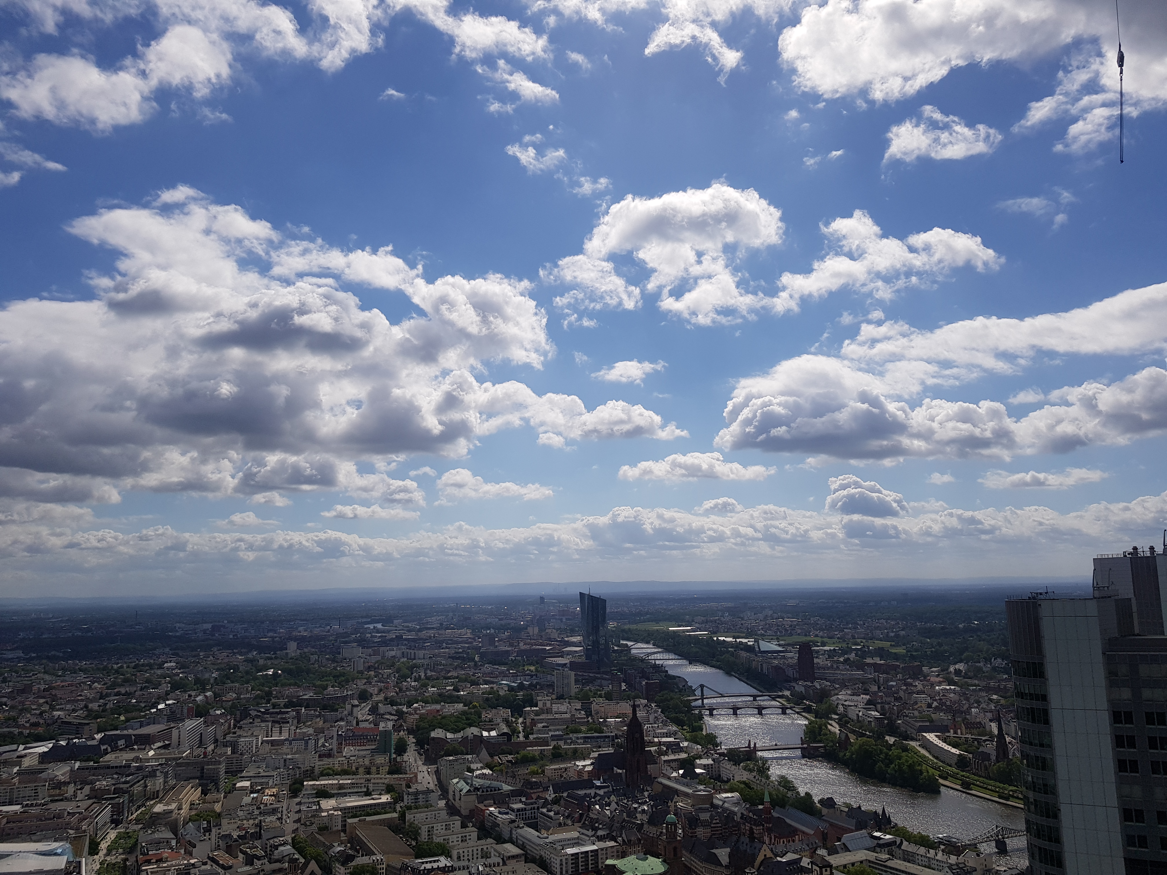 우선 로비층에 도착하게 되면 간단한 짐검사를 하고 엘리베이터를 타는데 엘리베이터 속도가 빨라 금방 꼭대기에 도착합니다. 저는 다른 스케줄로 인해 오전에 입장하여 야경을 보지는 못했지만 뻥 뚫린 시내와 마인강을 보니 색다른 느낌이었습니다.