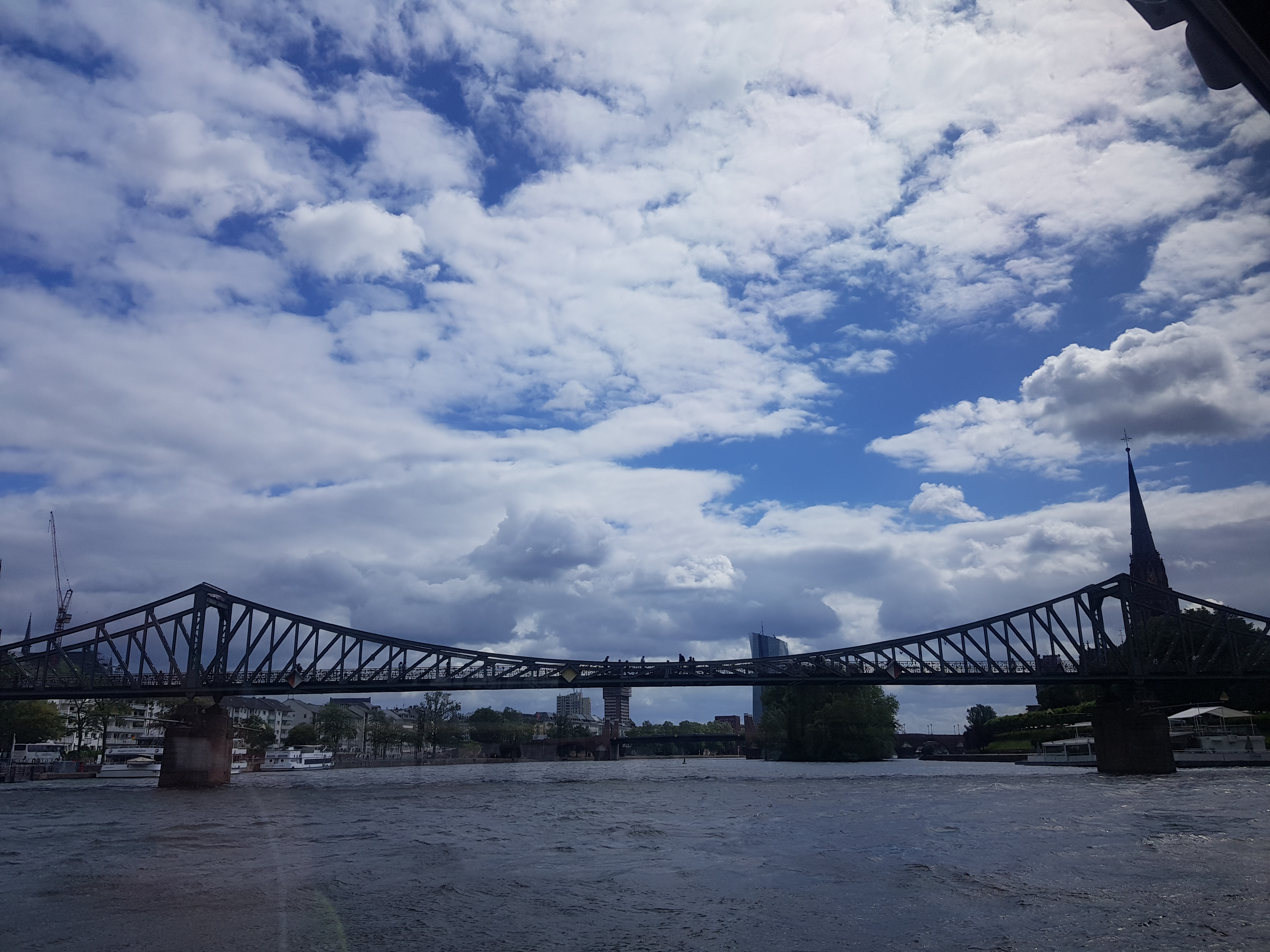 저는 프랑크푸르트를 세 번 방문했는데 늘 비슷한 곳을 방문하거나 그게 지겨울 때면 구글 지도를 내려놓고 발길 닿는 데로 골목 구석구석을 돌아다녔습니다. 그런데 마지막 프랑크푸르트를 방문 당시에는 왠지 유람선을 타보고 싶었습니다. 템즈강이나 센강은 유람선이 워낙 유명하지만 마인강 유람선은 크게 유명하지도 않았고 별다른 풍경이 없다고 생각했지만 그래도 저는 대만족 했습니다.산책로에서 마인강을 보는 시선과 유람선 위에서 시내를 보는 풍경은 사뭇 다른 느낌입니다.