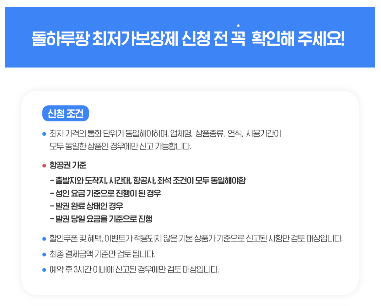 돌하루팡에서는 이미 예약 확정된 상품이 다른 사이트보다 비싼 경우 차액의 3배를 보상해 주는 최저가 보상제를 운영하고 있습니다. 그만큼 가격 하나만큼은 자신이 있다는 것이고 제주도의 대부분 렌트카 가격을 비교하기 때문에 돌하루팡보다 더욱 저렴한 가격을 검색하는 것은 사실상 어렵습니다.
