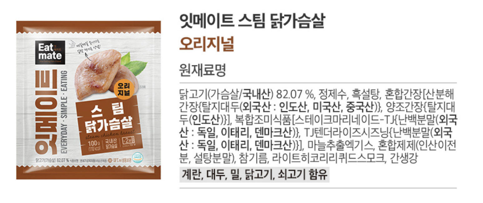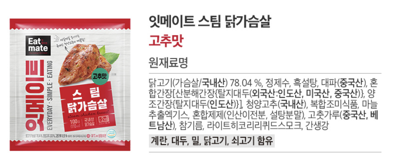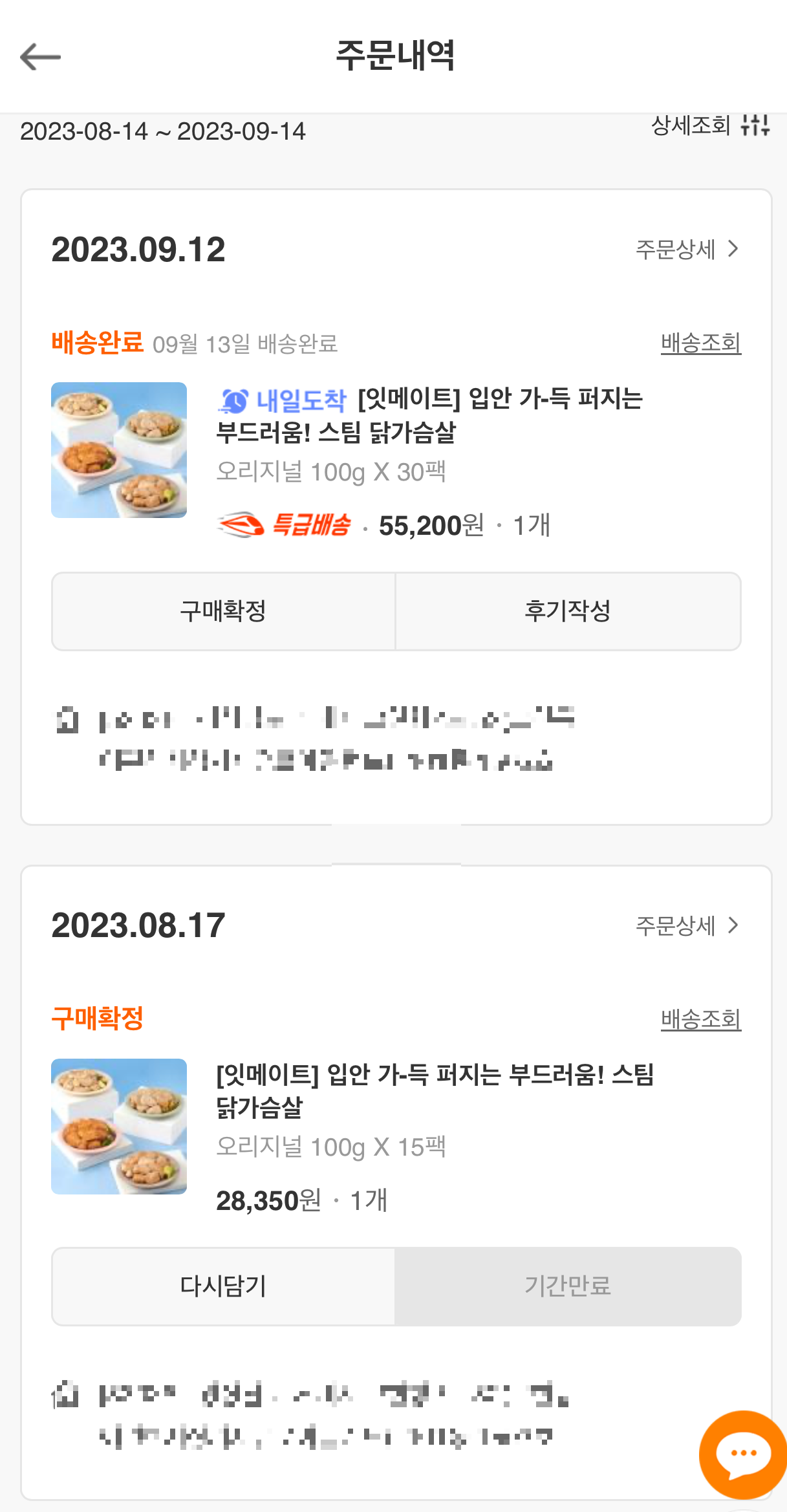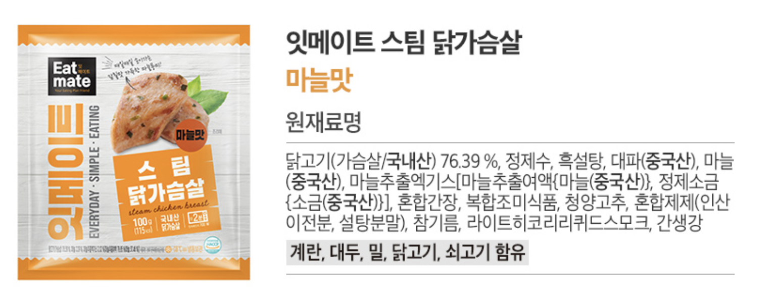 그래서 오리지널이 가장 담백하고 무난하여 꾸준히 먹기 좋고 잇메이트 스팀 닭가슴살은 식감이 부드럽고 맛이 무난하여 다른 음식과도 잘 어울립니다. 아래 주문 내역에서 보시면 아시겠지만 저는 꾸준히 잇메이트 제품을 주문하고 있고, 가끔은 아이도 같이 먹는데 누구나 편하게 먹기 좋습니다.