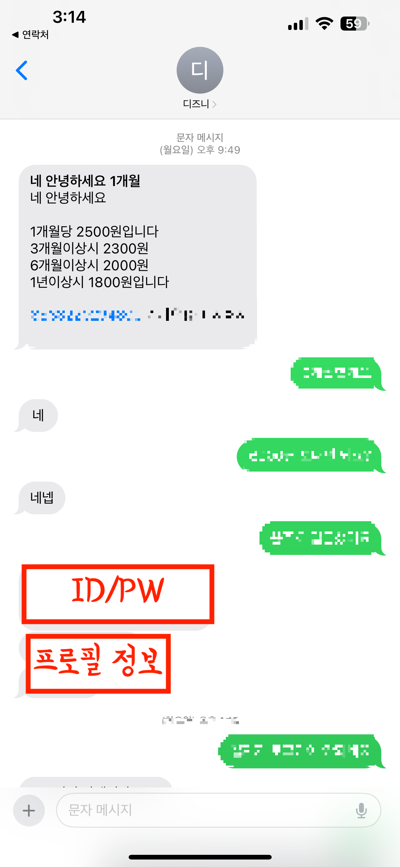 1개월만 이용할 경우 중간에 문제가 생기더라도 부담이 적고 장기 구독을 할 필요가 없어 편의점 커피 한잔 안마신다고 생각하면 아쉬울 것 없는 가격이라고 생각합니다. 거래 방법도 무척이나 간단합니다. 중고 거래 플랫폼 연락처로 연락을 하여 원하는 개월 수만큼의 비용을 입금하면 아이디, 패스워드를 알려주고 그대로 로그인만 하면 끝!! 정말 간단하죠?
