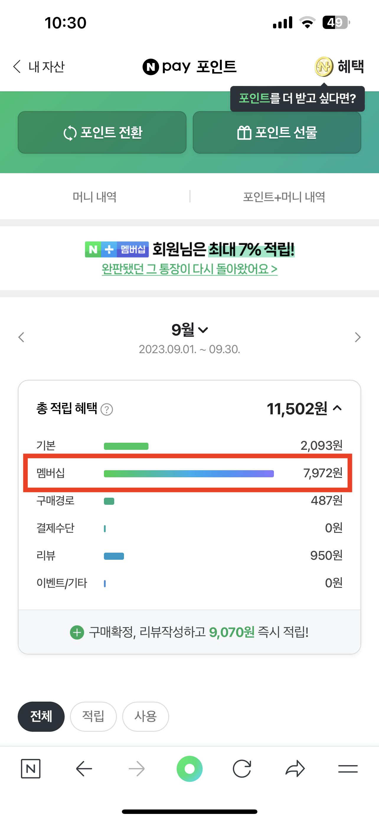 [네이버 멤버십 포인트 적립금]