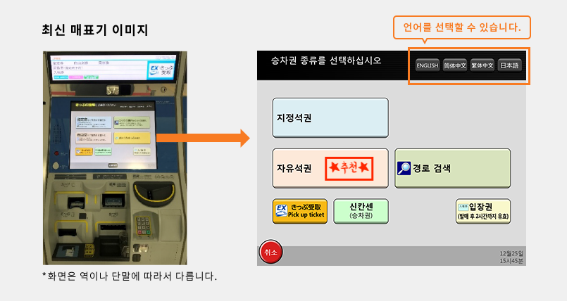 ★ 자유석은 목적지만 설정하기 때문에 원하는 기차시간에 타고 비어 있는 좌석에 앉으면 됩니다.