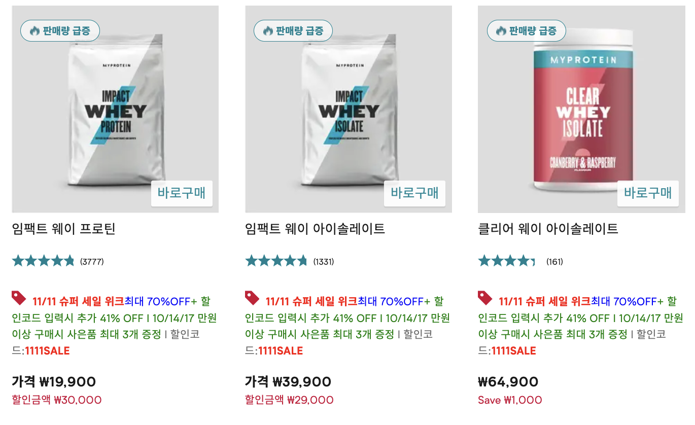 리뷰만 3,777개인데 더 이상 무슨 설명이 필요할까요? 마침 11/11일까지 슈퍼 세일 위크를 진행하고 있어 프로틴 대란이 일어났으니 필요한 분들은 주저 없이 아래 링크로 들어가서 구매하면 될 것 같아요.
