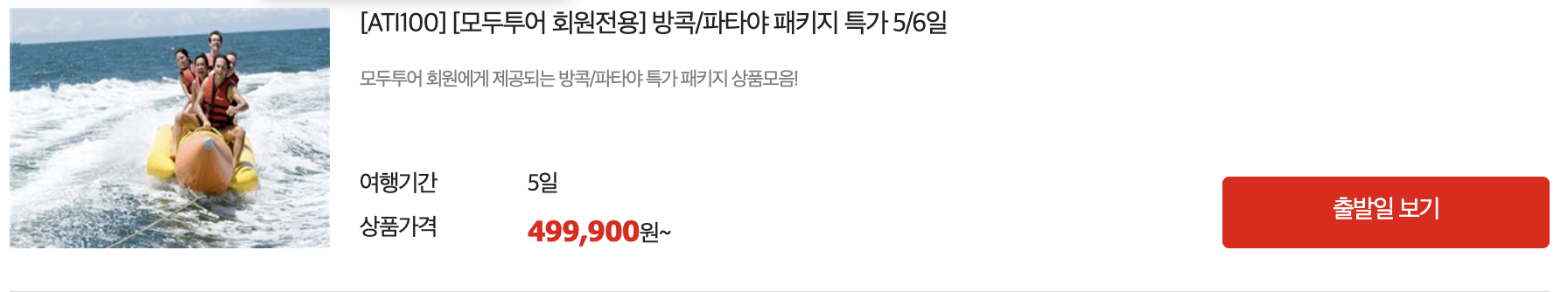 1) 태국 방콕/파타야 패키지 5/6일 : 499,000원 ~
