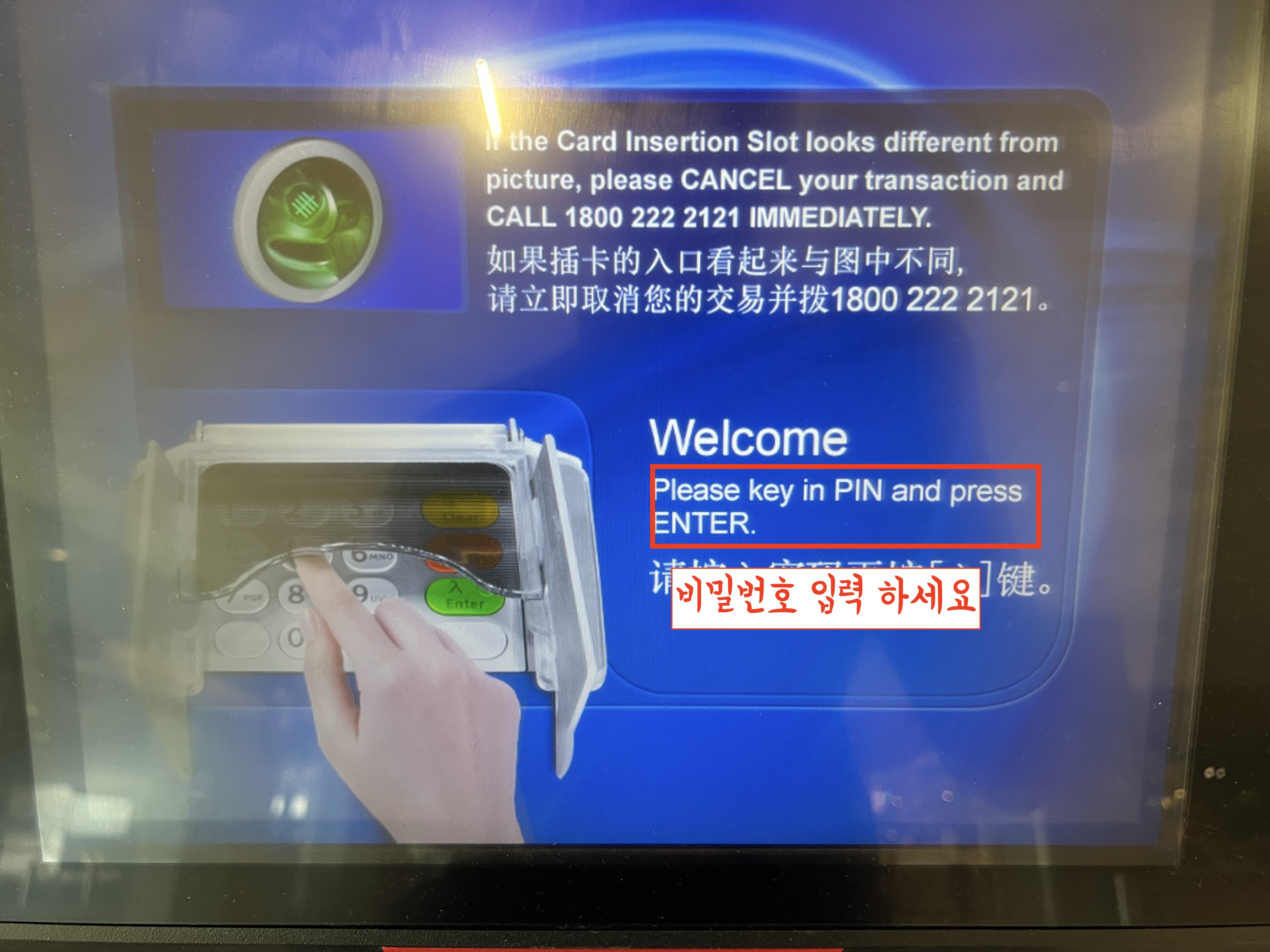 [싱가포르 ATM 현금인출 절차]