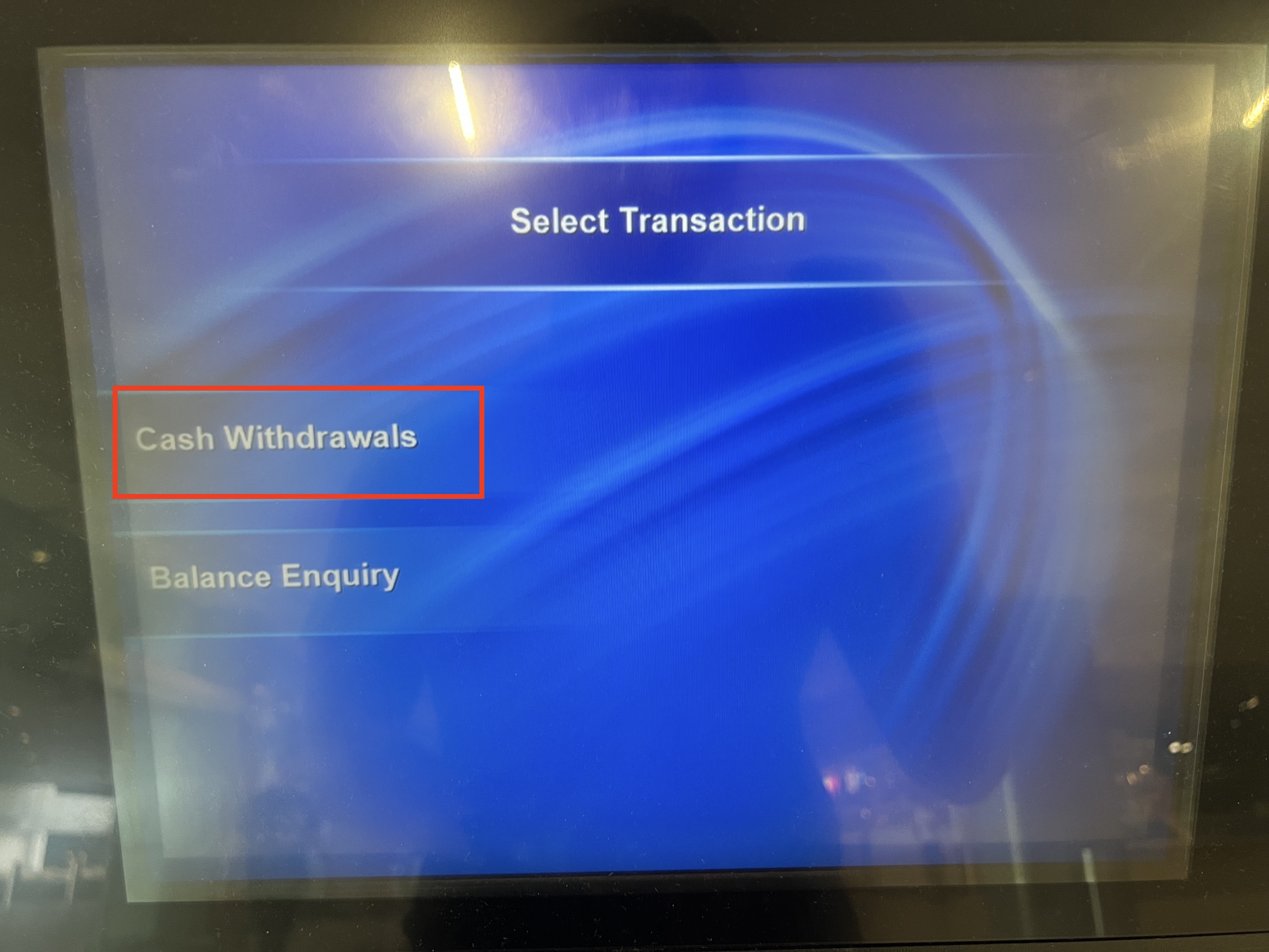 - Cash Withdrawals (현금 인출) 선택