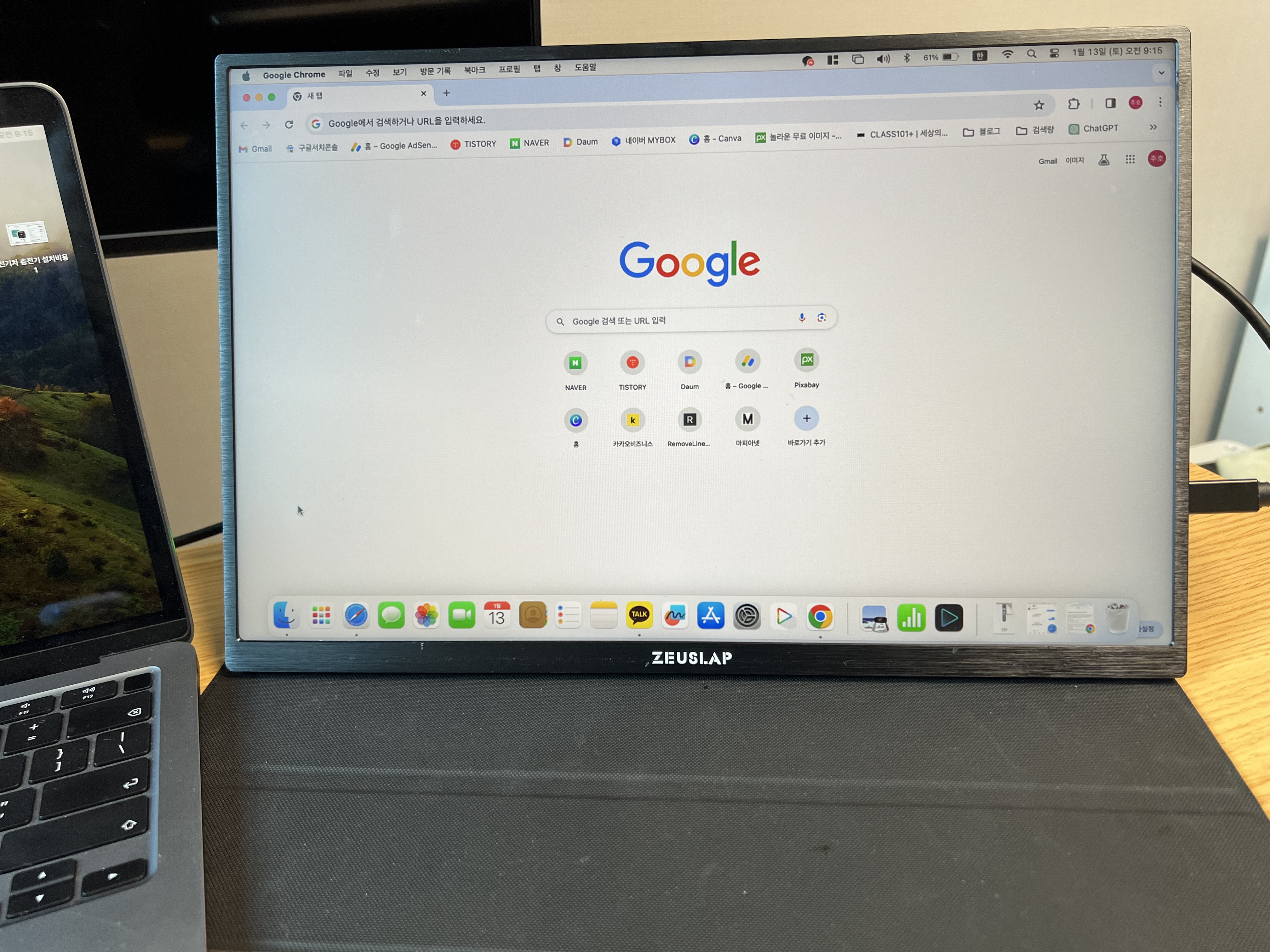 쉽게 말해서 이도저도 아닌 사이즈가 될 수 있습니다. 그러한 점을 느꼈는지 제우스랩에서는 조금 더 큰 사이즈의 모니터를 신제품으로 내놓기도 했는데요. 저도 처음에는 블로그를 작성할 때 노트북의 서브 모니터로 활용하다가 결국은 삼성전자 M7을 사버렸습니다.