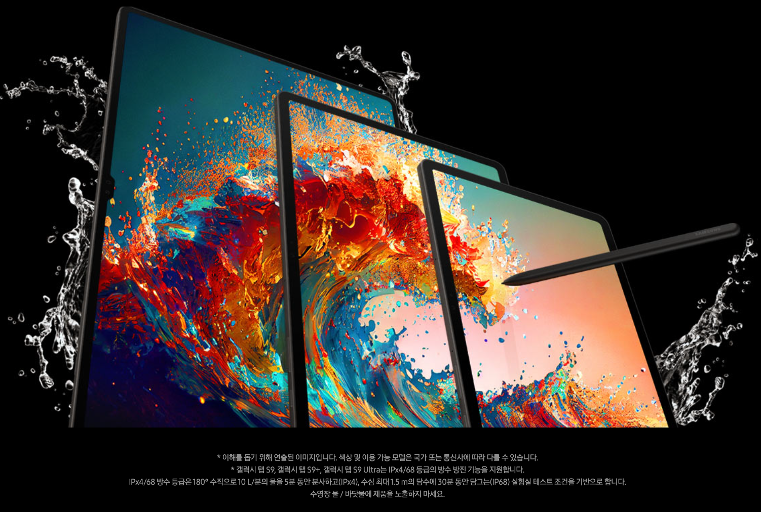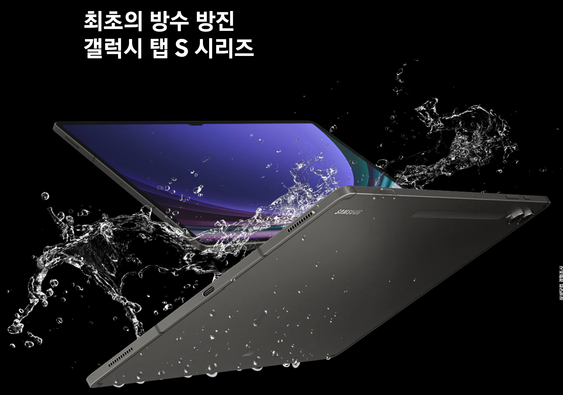 이번 갤럭시탭S9 시리즈에서는 태블릿에서는 최초로 방수방진 기능이 들어갔는데 IP68 등급이 적용되었습니다. 저는 가끔 태블릿을 샤워하거나 욕조 앞에서 두고 보기도 하는데 늘 불안한 마음이 있었습니다.