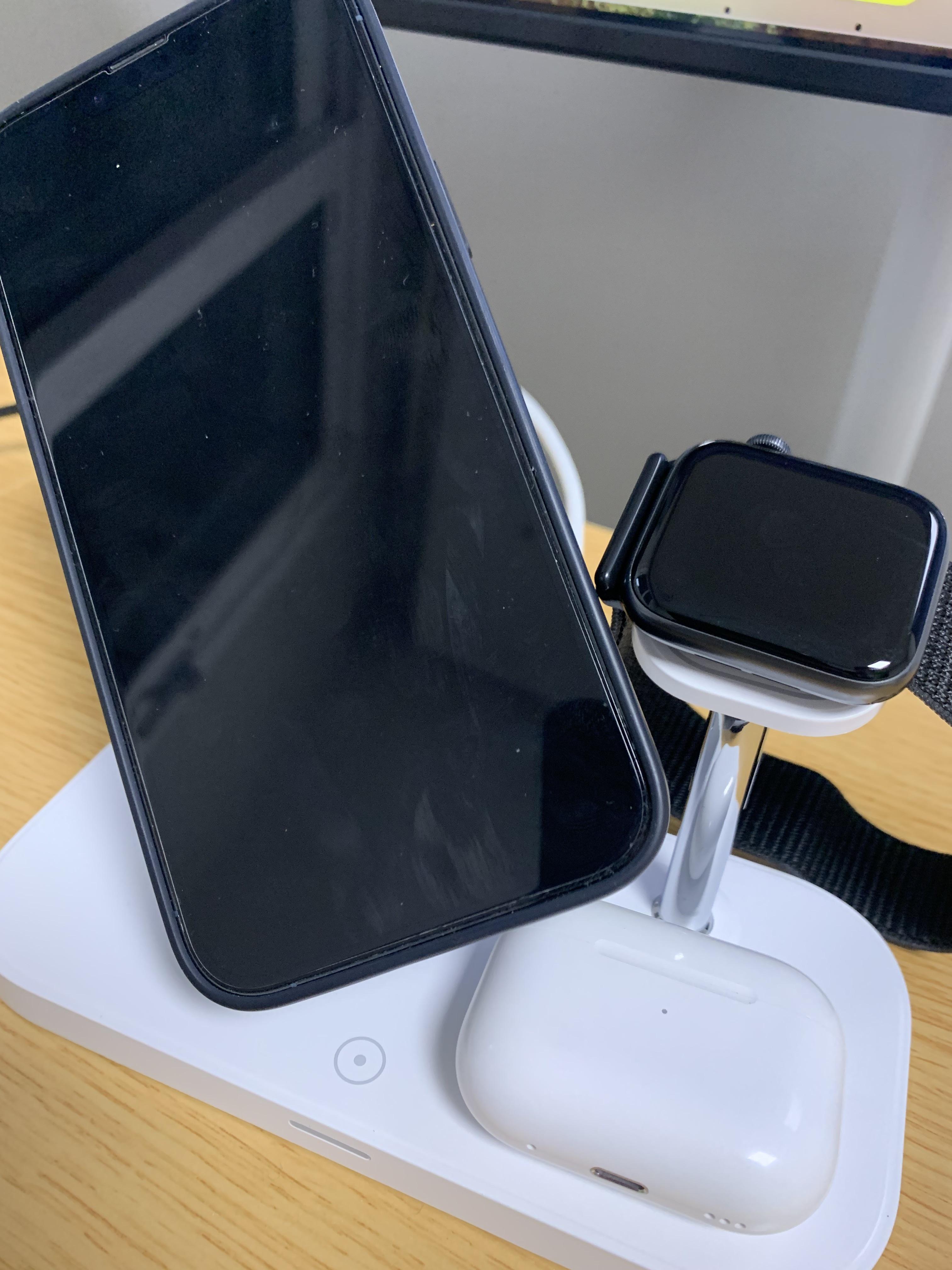 3 in 1 충전기 디자인 스타일이 많지만 저는 모든 기기의 충전상태를 한 눈에 알아보기 쉬운 스타일을 좋아하기에 잘 고른 것 같아요.