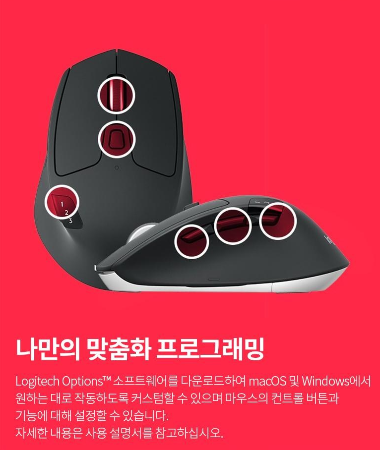 마우스 왼쪽에는 다양한 기능을 사용할 수 있는 버튼이 있는데, 이를 커스텀 하기 위해서는 Logitec Options에서 소프트웨어로 설정해 주면 됩니다. 설정 자체는 어렵지 않고 직관적으로 되어 있으니 필요한 분들은 아래 링크를 따라 로지텍 옵션 설치해 보세요.