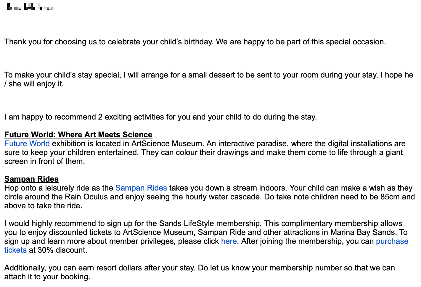 - 마리나 베이 샌즈 객실 예약파트 메일주소 : room.reservations@MarinaBaySands.com