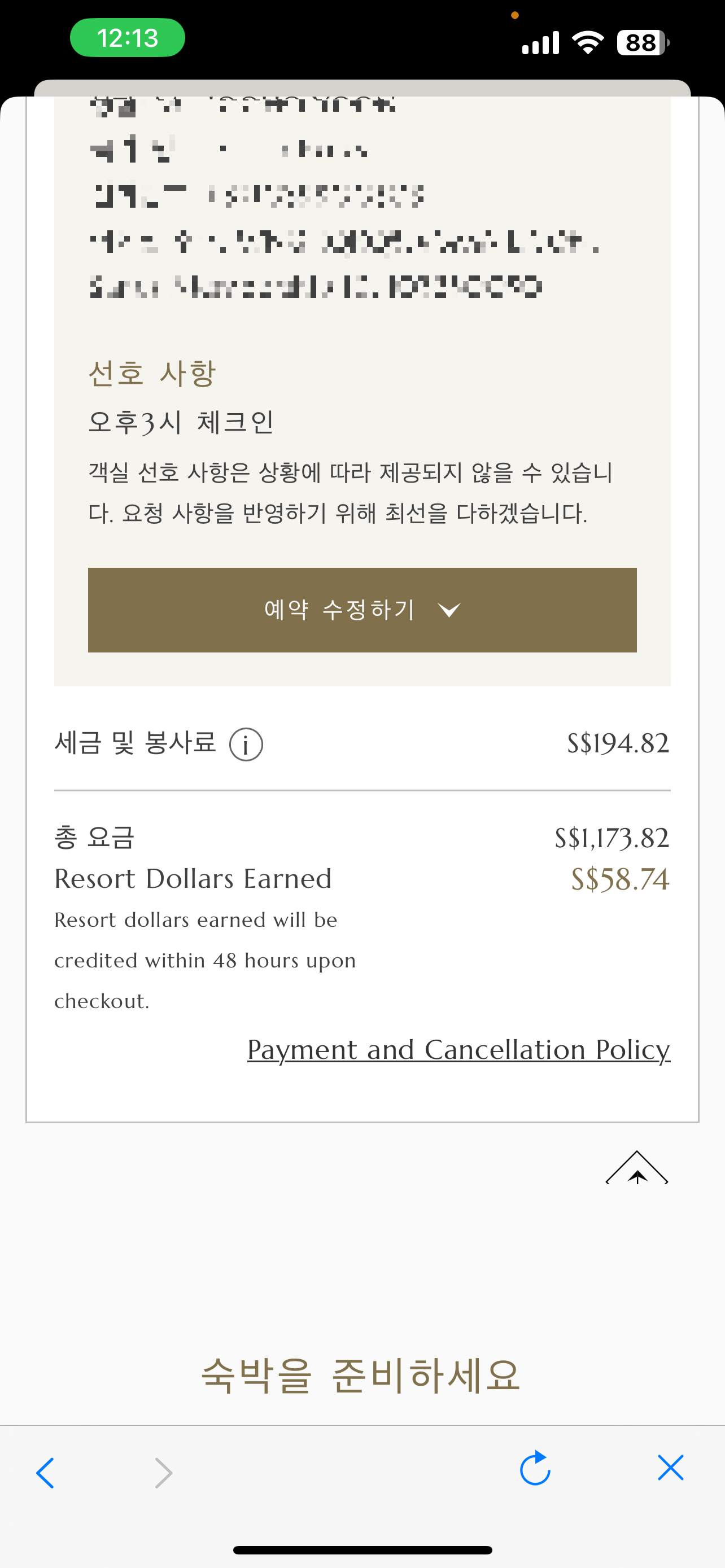 공식 홈페이지에서 예약하더라도 가격이 실시간으로 변동하더라고요? 그래서 저는 제가 예약했던 가격을 정확히 적어두고 방문 전날까지 확인하면서 가격이 내려왔을 때 기존 예약은 취소하고 다시 저렴한 가격으로 예약했으니 이 점 참고하세요.