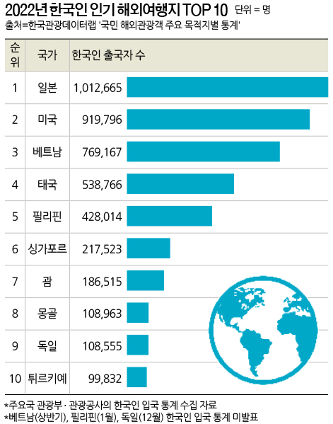 2022년 인기 해외 여행지를 보시면, 일본이 압도적으로 많고 미국 베트남 순으로 한국 여행객들 이 많이 방문한 것으로 보입니다. 심지어 몽골이 8위인 점을 생각하면 말레이시아가 다른 국가에 비해서는 한국인들이 덜 방문한다는 사실을 알 수 있습니다. 그렇기 때문에 베트남 다낭, 태국 방콕과 같이 뻔한 동남아 휴양지 말고 다른 나라를 찾고 계신다면 코타키나발루가 좋은 대안이 될 수 있습니다.