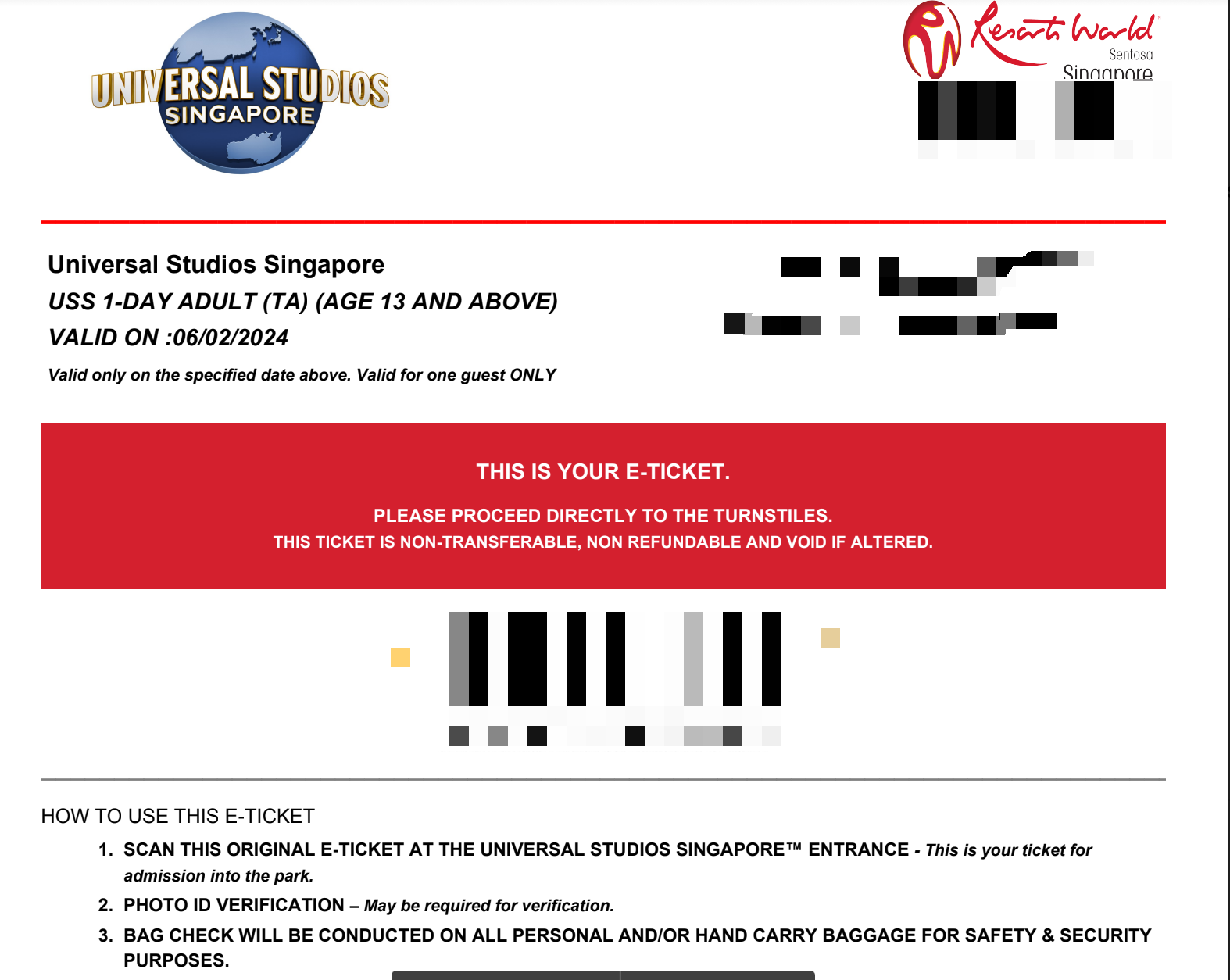 저는 방문하기 전날에 급하게 구매를 했고, 다음날에 바로 티켓을 받았지만 보통 티켓발급까지 2~3일 걸린다고 하니 싱가포르 유니버셜 스튜디오에 방문하실 분들은 미리미리 예매하는 것을 추천드려요.