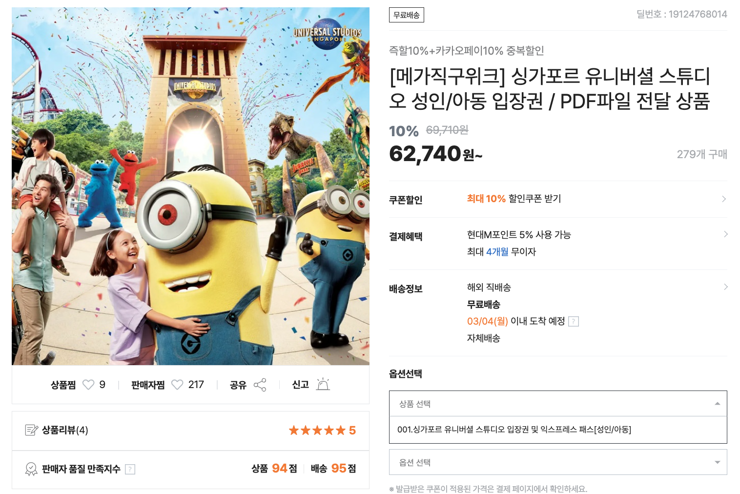 [티몬] [메가직구위크] 싱가포르 유니버셜 스튜디오 성인/아동 입장권 / PDF파일 전달 상품