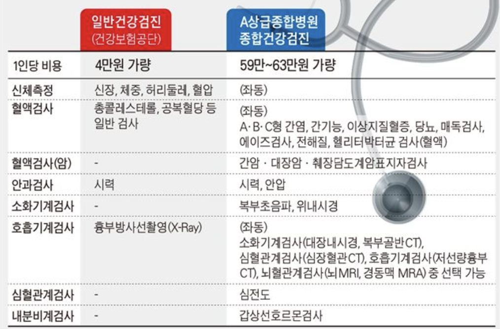 - 일반 검진비용 : 국민건강보험공단에서 전액 부담