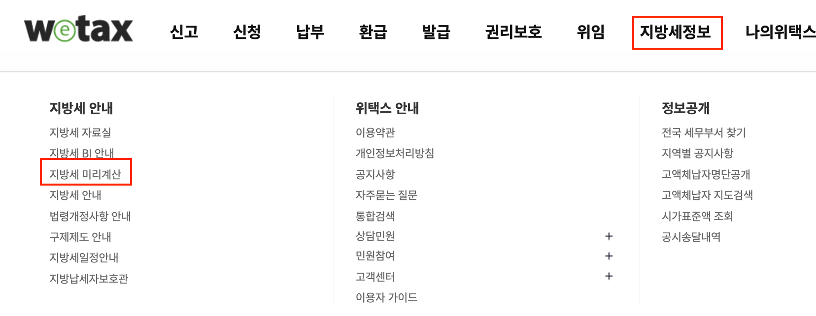 - 경로 : 지방세 정보 ▶︎ 지방세 미리계산
