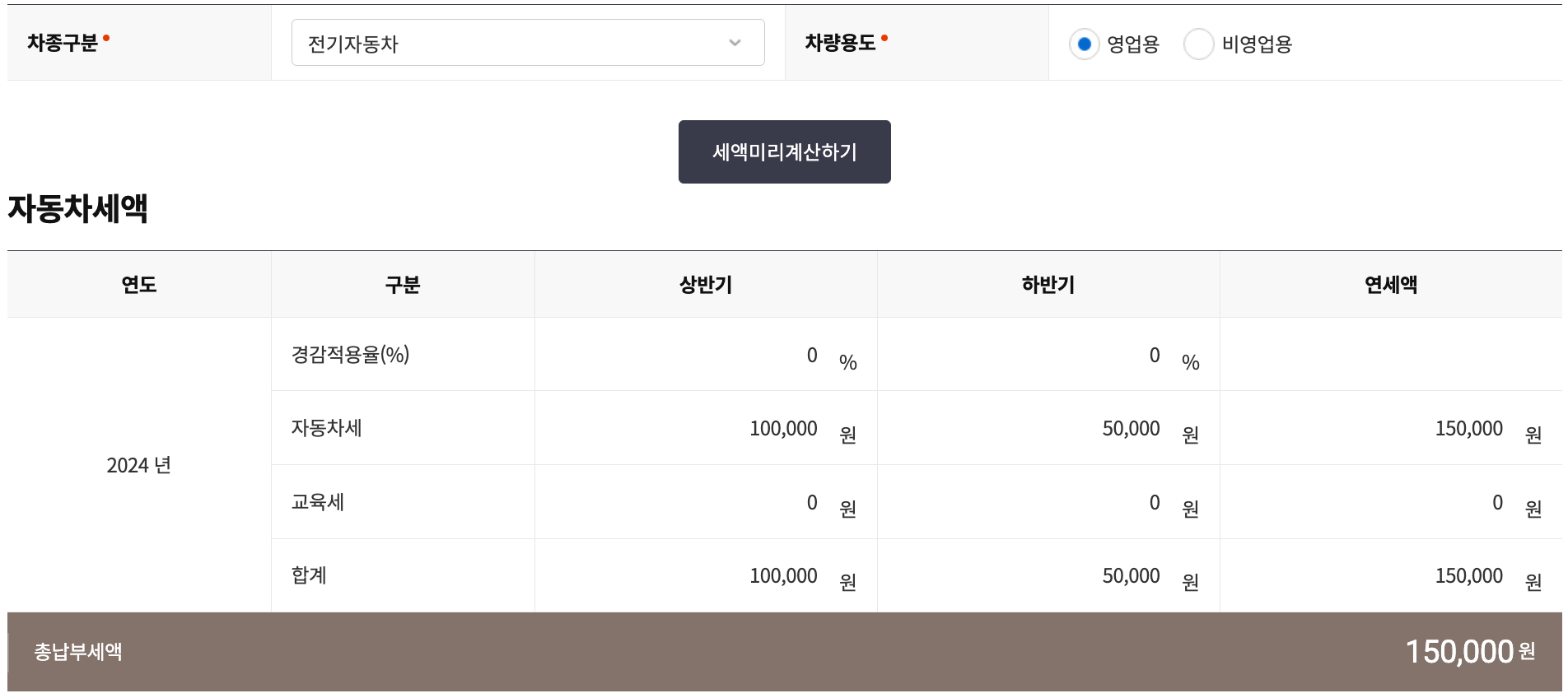 반면에 전기차는 종류와 관계없이 일괄 15만원입니다. 전기차 도입이 얼마 지나지 않았기 때문에 배기량을 기준으로 과세를 하는 우리나라는 15만 원으로 책정하고 있으며 이 점은 분명 전기차를 선택하는 차주 분에게는 아주 큰 장점이 되겠네요.