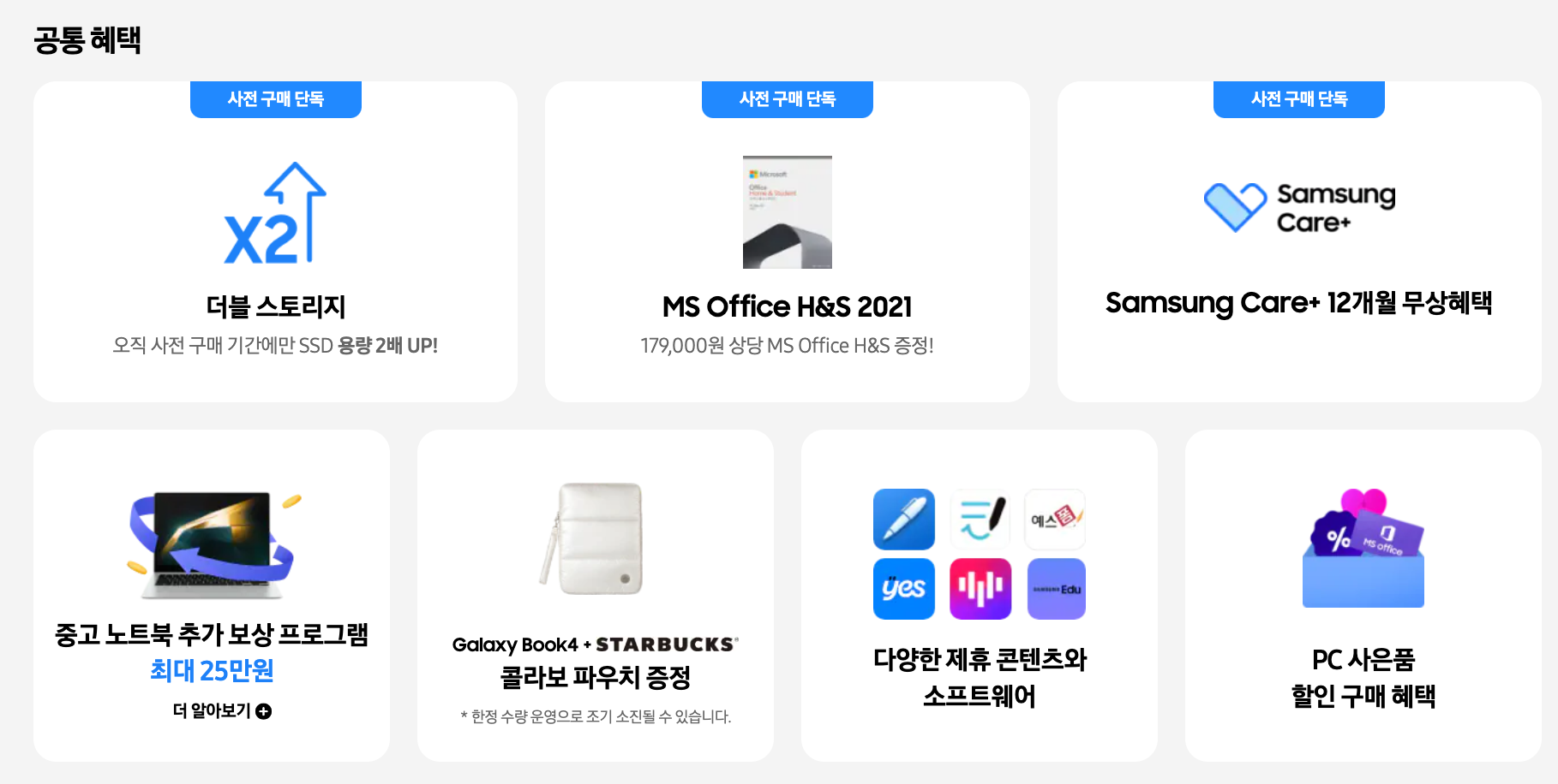 사전예약의 혜택은 삼성닷컴 단독 혜택과 공통 혜택으로 나뉘는데요.