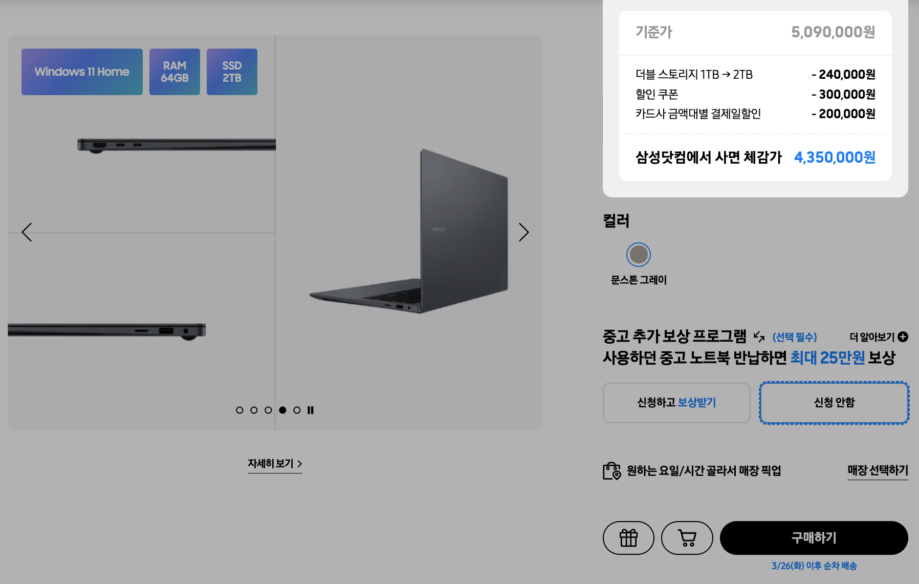 삼성닷컴 단독 혜택을 먼저 보면,