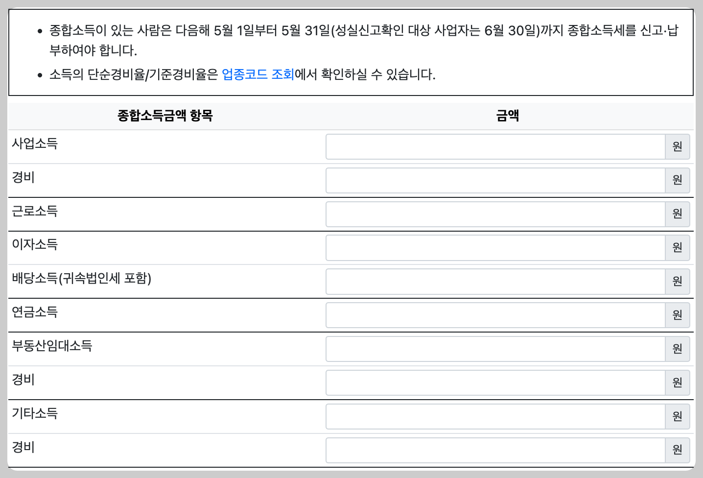 종합소득세 신고대상