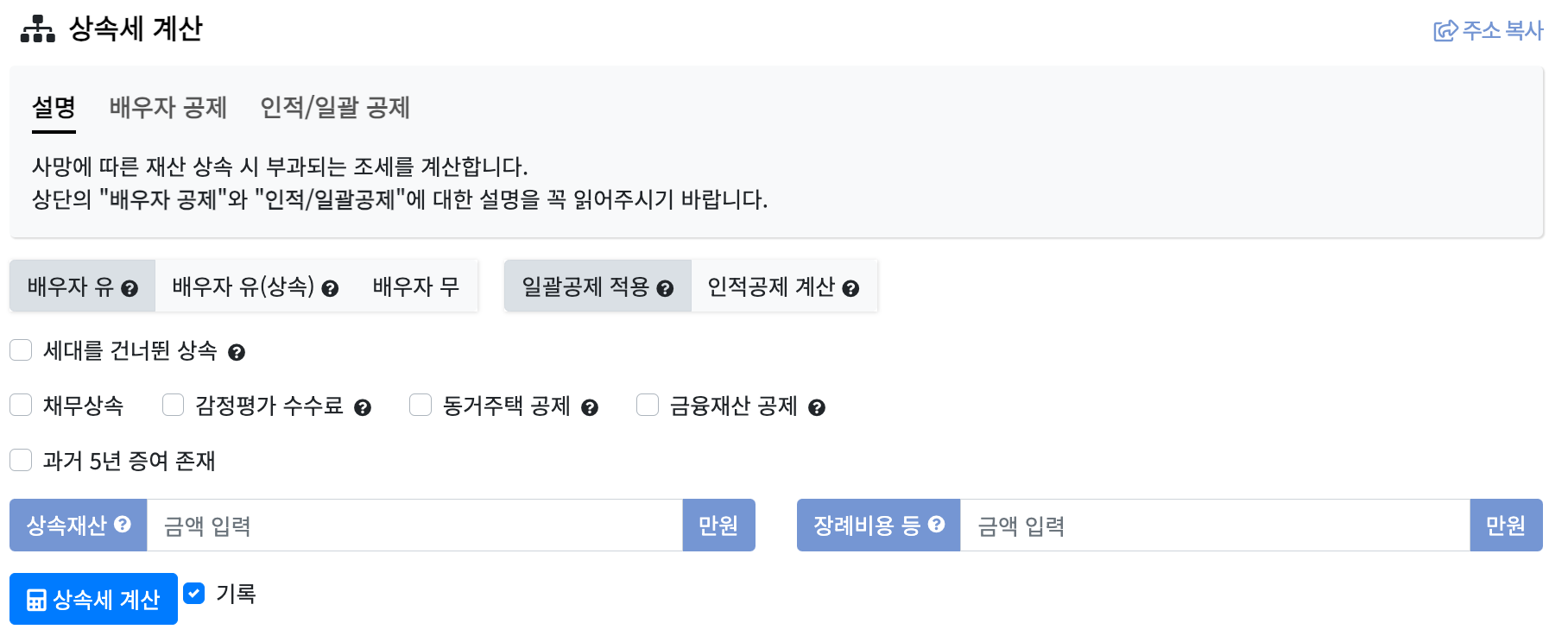 이렇게 설명드리더라도 상속세를 계산하는데 어려움을 겪는 분들은 상속세 계산기를 활용하는 것을 추천드려요. 하지만 계산 금액은 단순 예측용이기에 상속되는 재산이 많고 복잡하다면 합법적인 절세를 위해 반드시 세무사의 도움을 받는 것이 좋습니다.