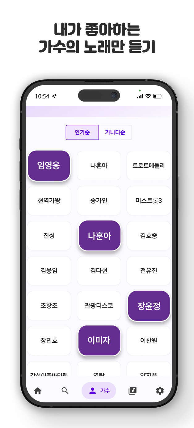 그리고 내가 좋아하는 가수만 선택해서 들을 수도 있기 때문에 임영웅 가수님의 팬 분들은 하루종일 임영웅님 노래를 들을 수가 있어요.