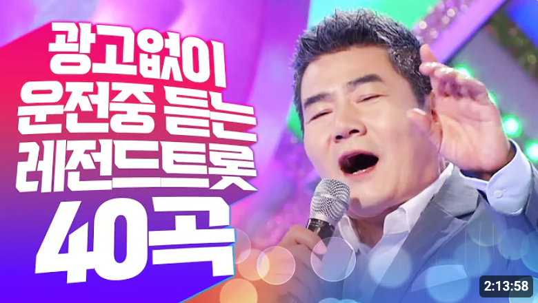 다양한 트로트를 듣고싶다면 트로트 모음 100곡도 좋습니다. 광고가 없어 1시간 50분동안 내가 좋아하는 트로트를 들을 수가 있어요. 업로드된지 5개월만에 40만 조회수가 나왔는데 유튜브 상단 알고리즘에 있어 시간이 지나면 조회수가 더더 많이 늘어나겠네요.