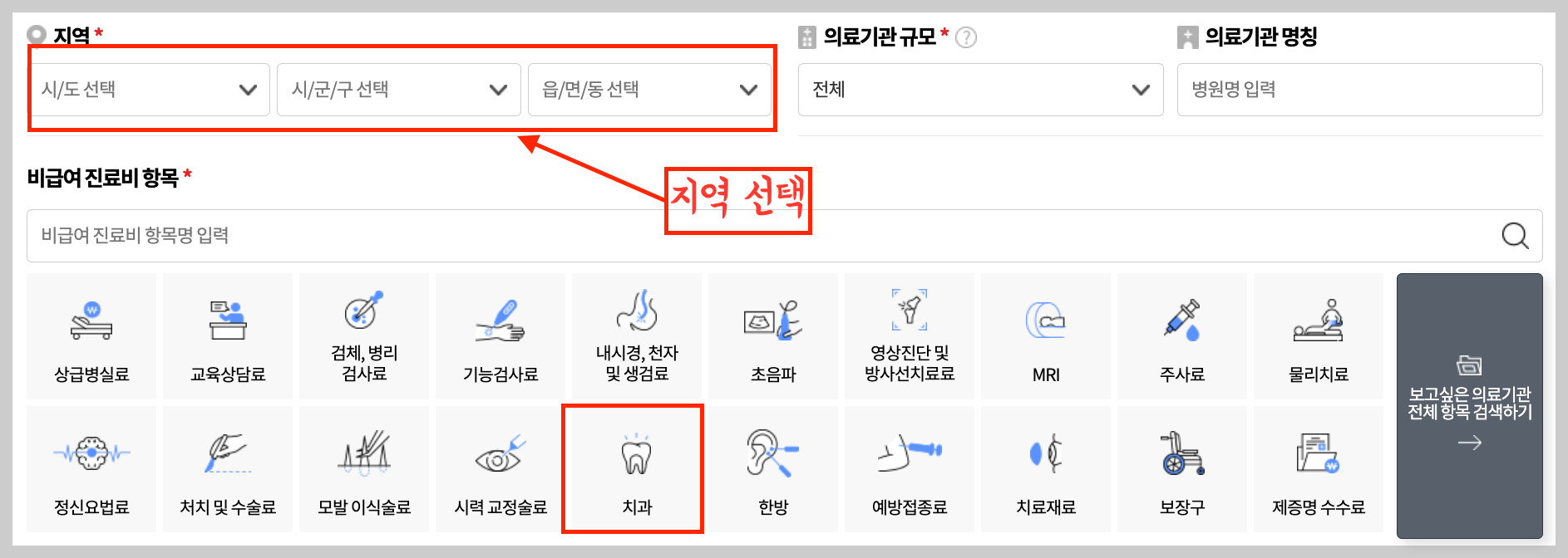 본인이 거주하는 지역을 먼저 선택하고, 치과에 들어가서 임플란트를 선택 후 검색해보세요. 그러면 의료기관명, 소재지, 임플란트 종류에 더해 가격정보까지 모두 알 수 있습니다.