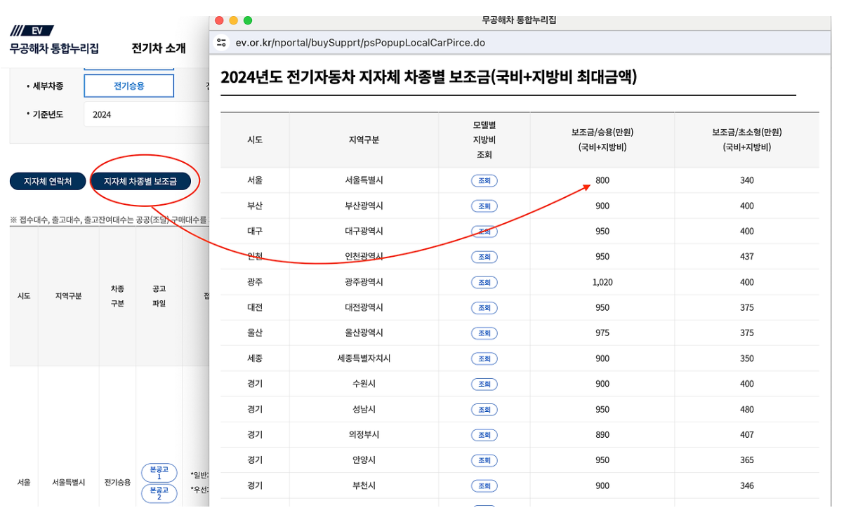 <지자체 차종별 보조금 확인방법>