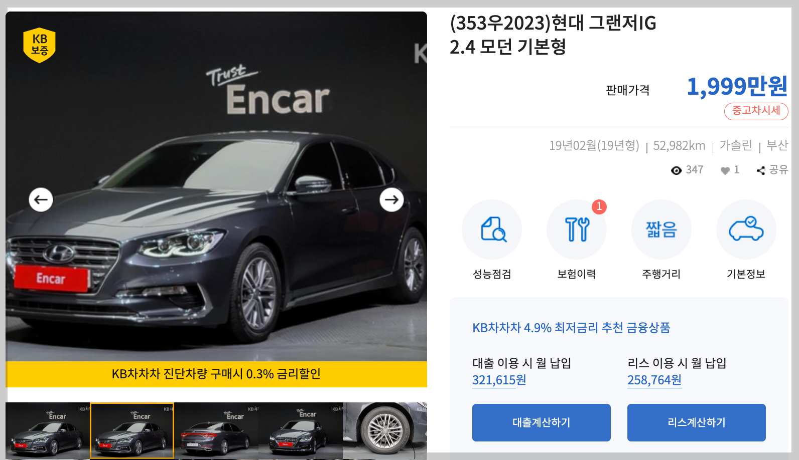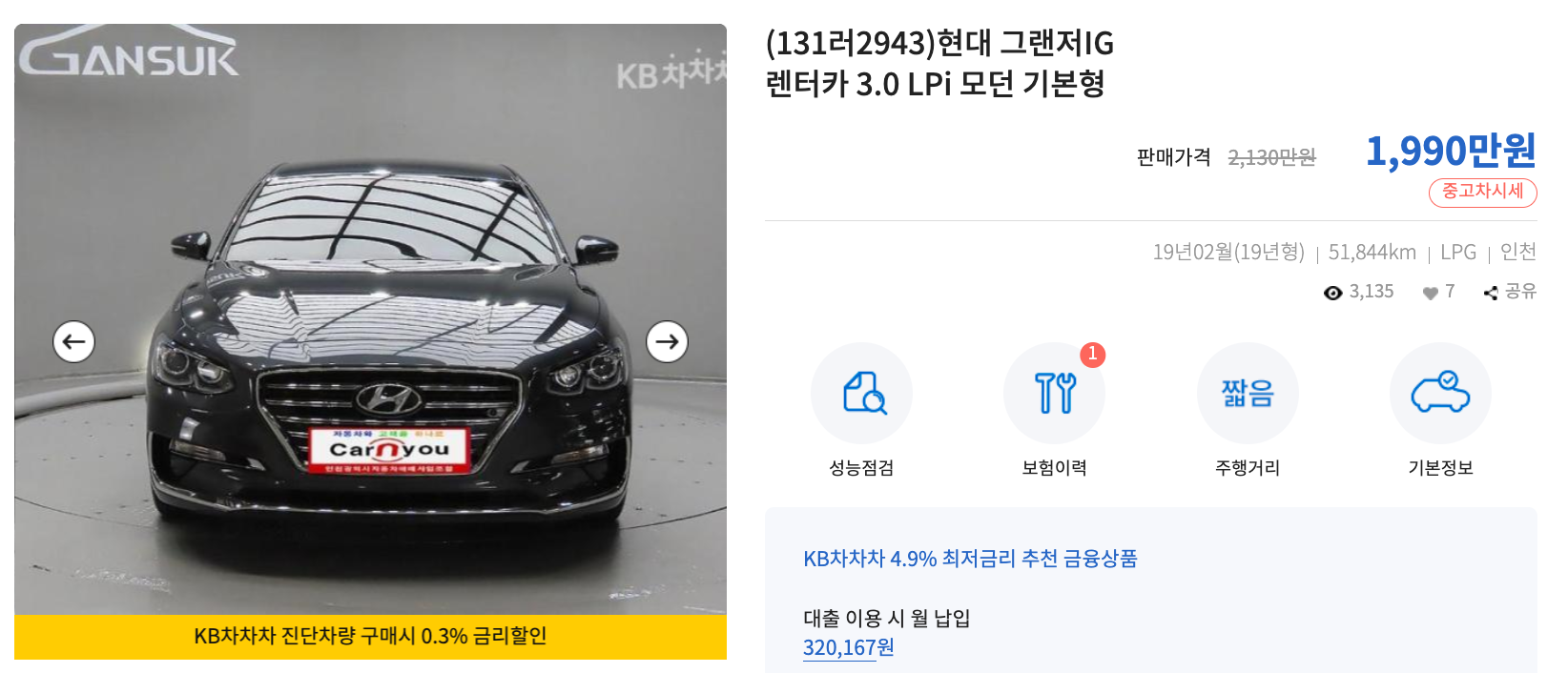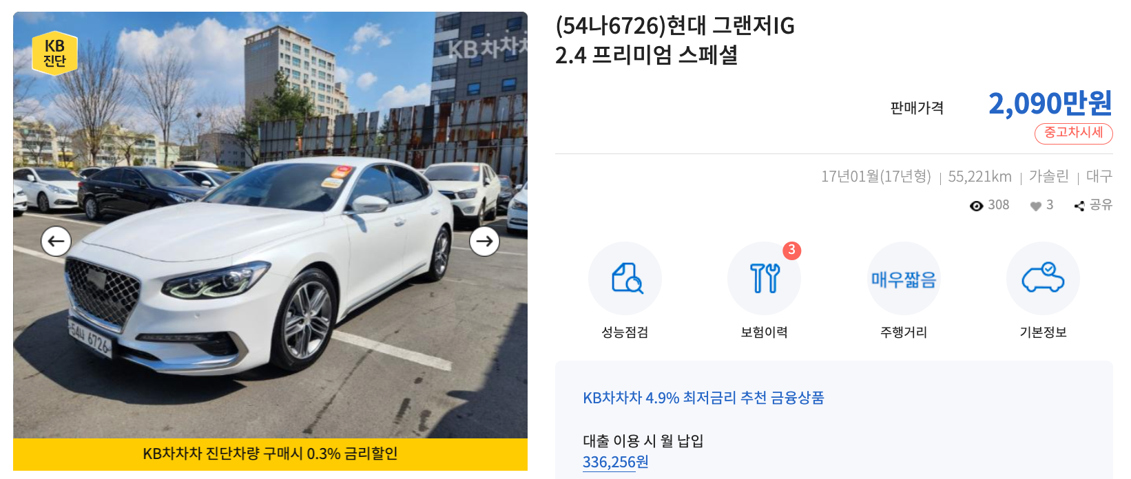 앞서 제가 입이 닳도록 칭찬한 그랜저 IG의 매물 3개만 추천 드려볼게요.