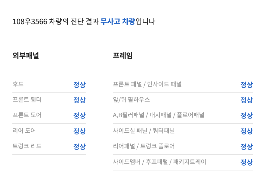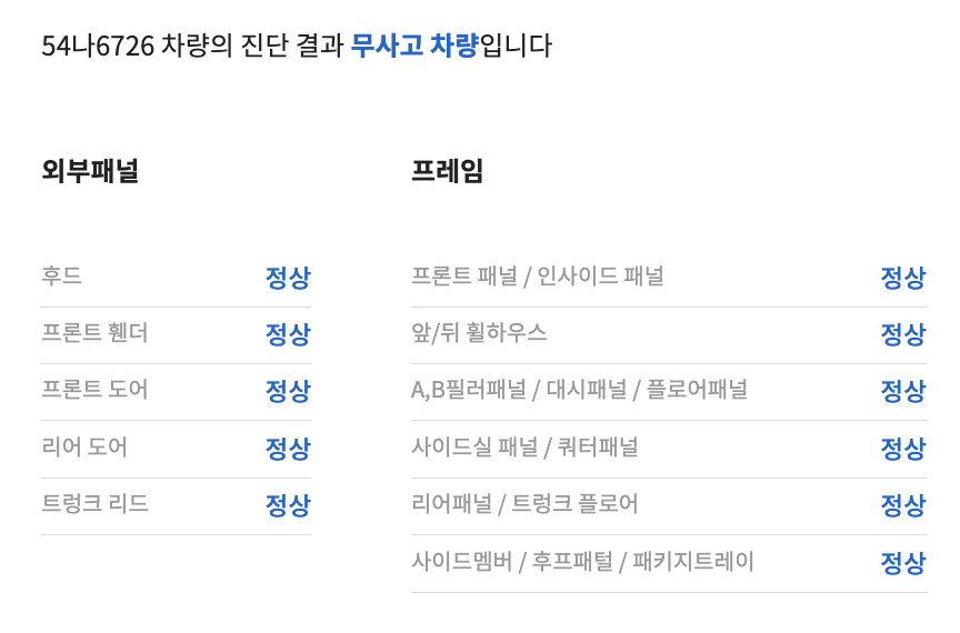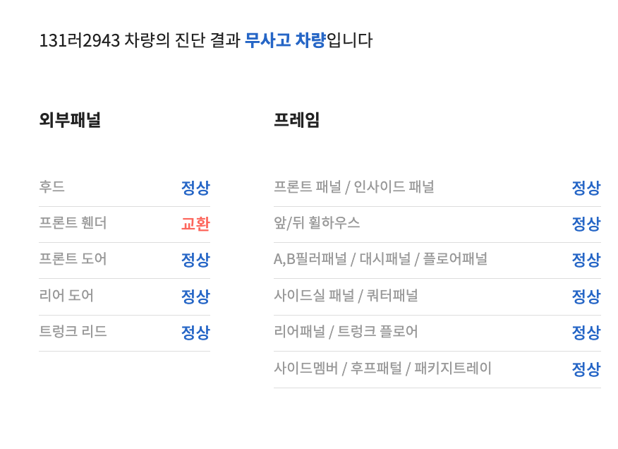 - 보험 이력이 깨끗하고 성능점검에 문제가 없는 차량