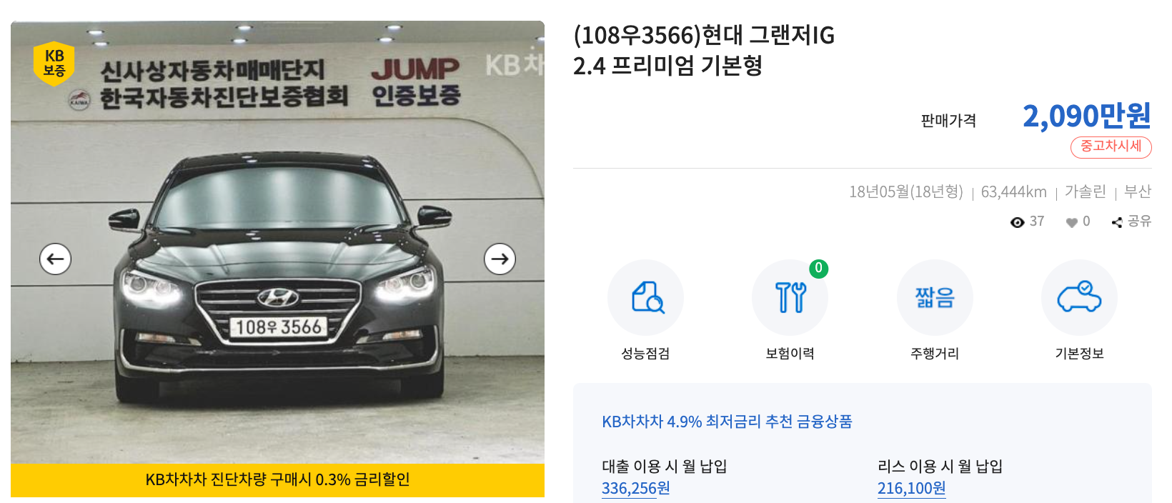 앞서 제가 입이 닳도록 칭찬한 그랜저 IG의 매물 3개만 추천 드려볼게요.