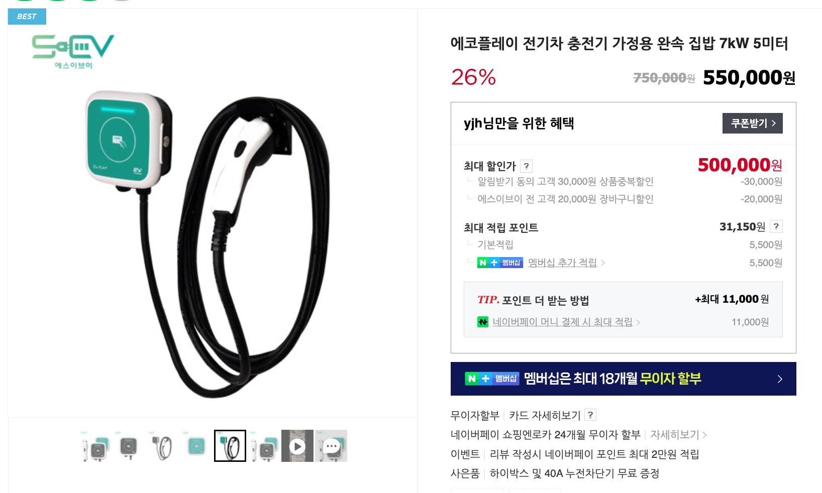 가장 유명한 브랜드는 에코플레이로 7km 완속 충전기 가격이 55만원이며 충전 케이블 길이는 기본 5m인데 추가 요금을 내게 되면 길이 추가도 가능해요.