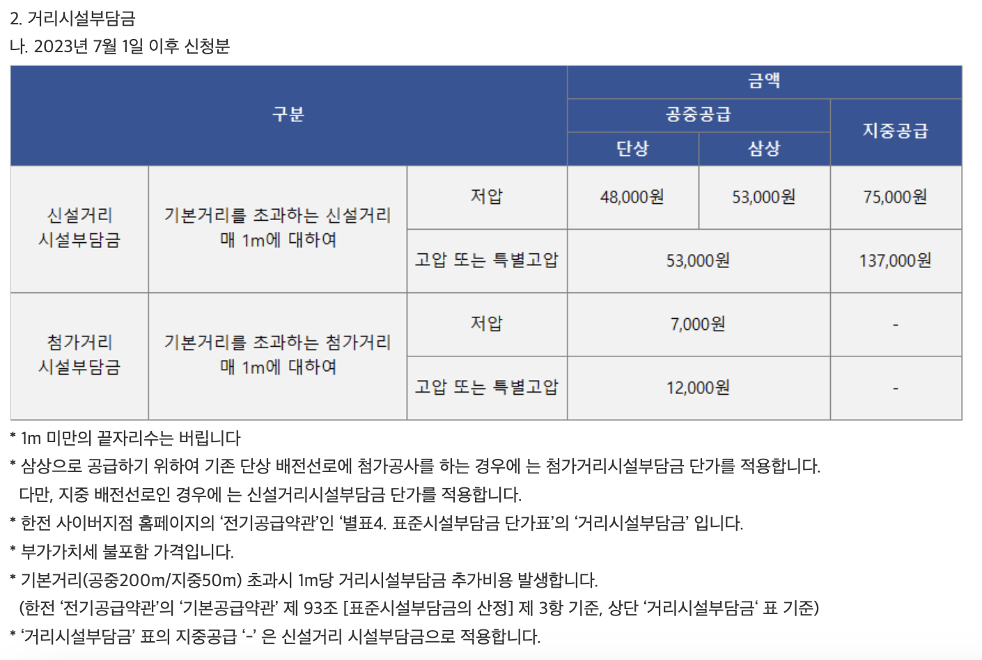 - 전기공급약관(별표4. 표준시설부담금 단가표) | KEPCO -