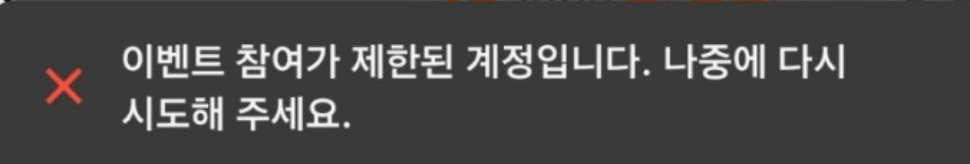 '이벤트 참여가 제한된 계정입니다. 나중에 다시 시도해주세요'