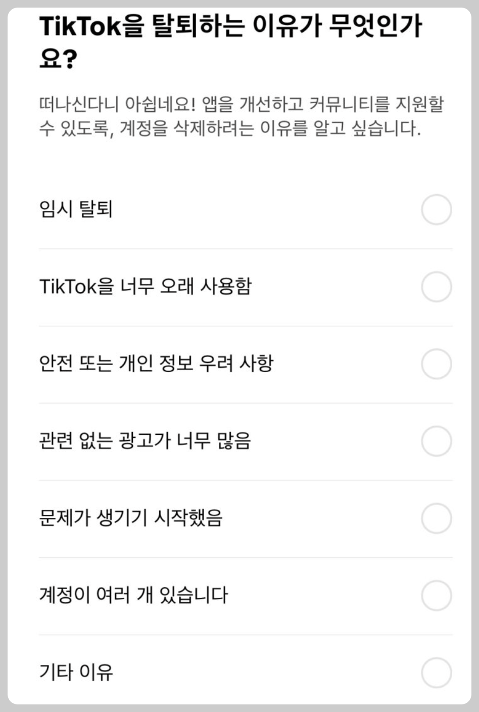 틱톡 라이트 탈퇴 오류