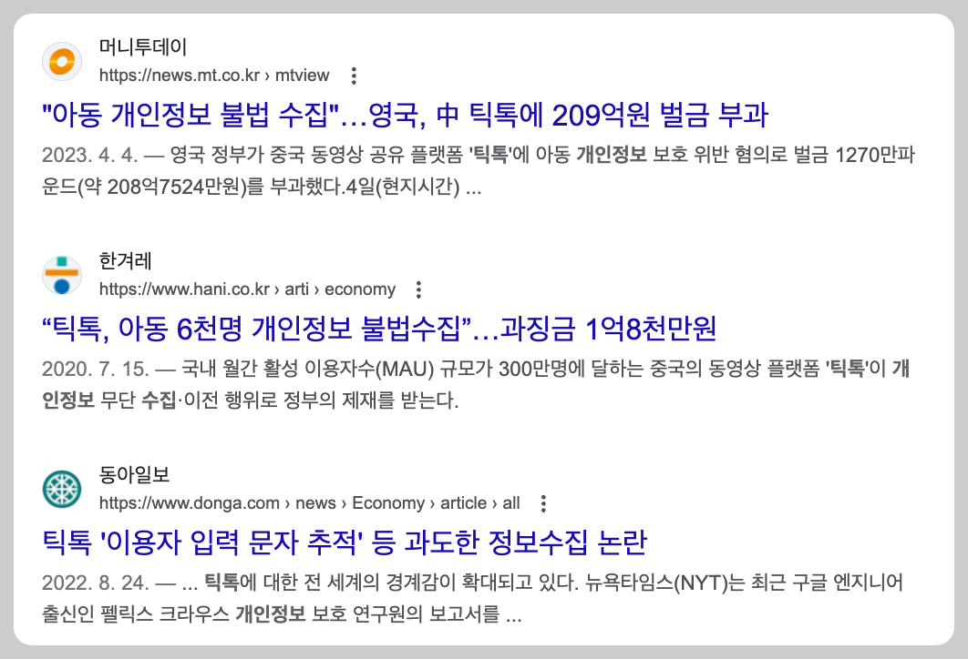 틱톡의 개인정보 불법수집에 대한 문제는 이미 유명했고, 영국에서는 '아동 개인정보 불법 수집'을 근거로 틱톡에 무려 209억원의 벌금을 부과하기도 했습니다. 그런데 저도 틱톡 라이트를 가입한 이후 이상할 정도로 스팸문자가 많이 오고 있긴합니다.
