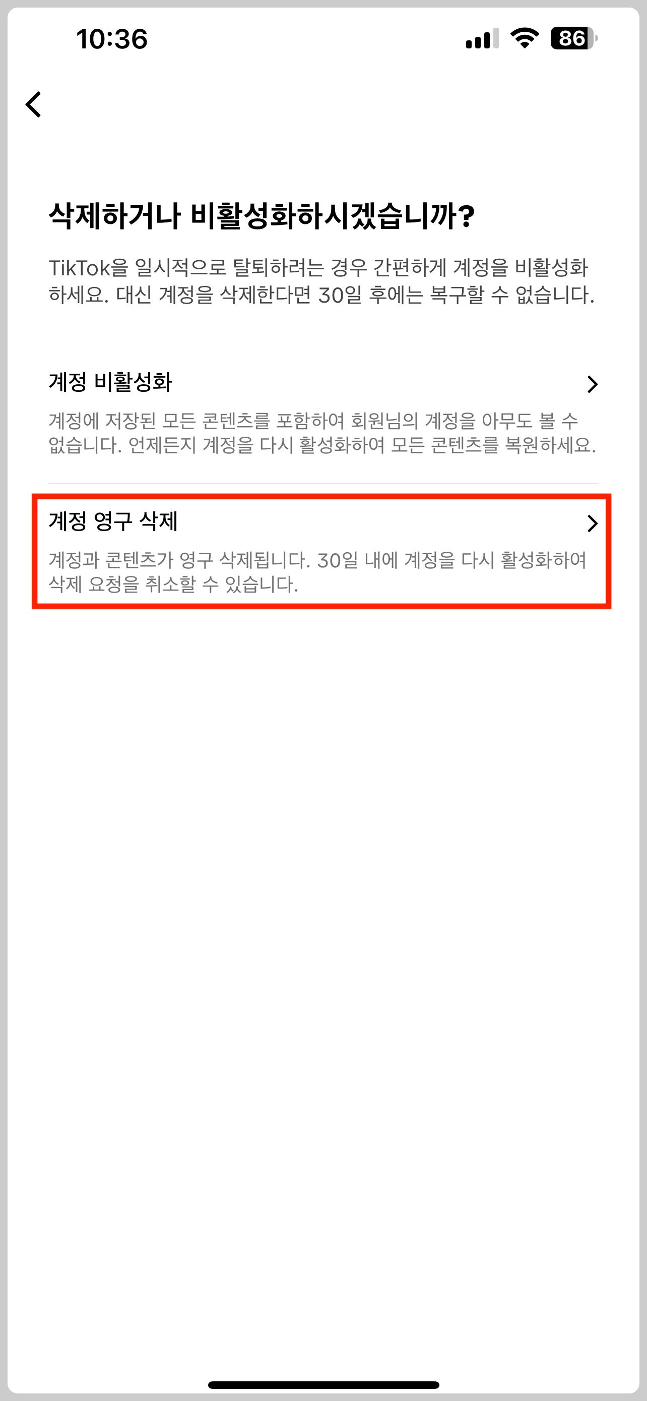 - [계정 영구 삭제] 선택